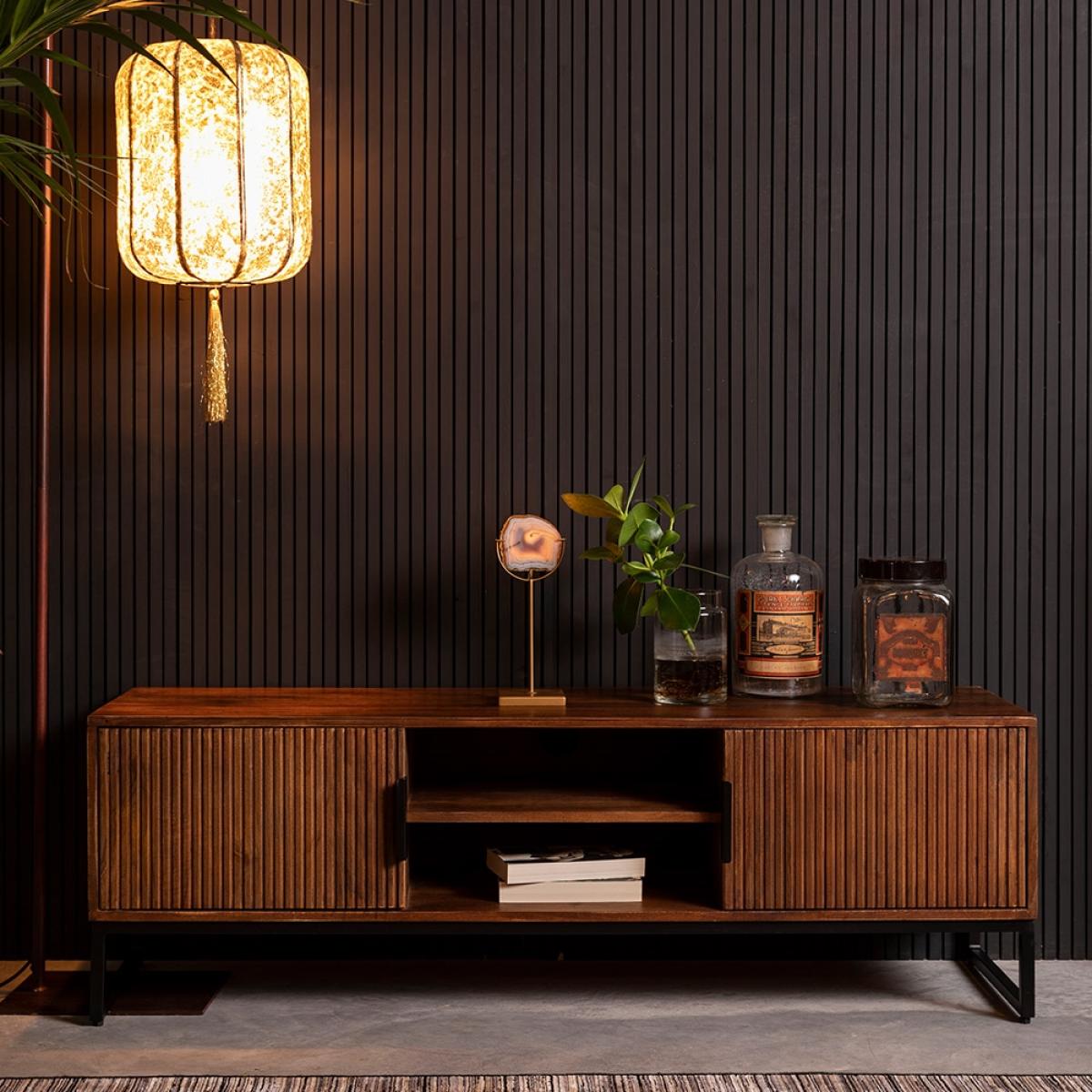 After some storage that is not only functional but that looks good too? Well, look no further than the Saroo Sideboard from Dutchbone! Crafted from mango wood and finished in a gorgeous light honey colour, this storage cabinet is sure to look stunning wherever you place it. Complete with two cupboards and a central shelf, stow away your knick-knacks behind the beautiful textured doors. Whether used in the dining room to store tableware or in the living room for your TV, Saroo will be more than happy to help.