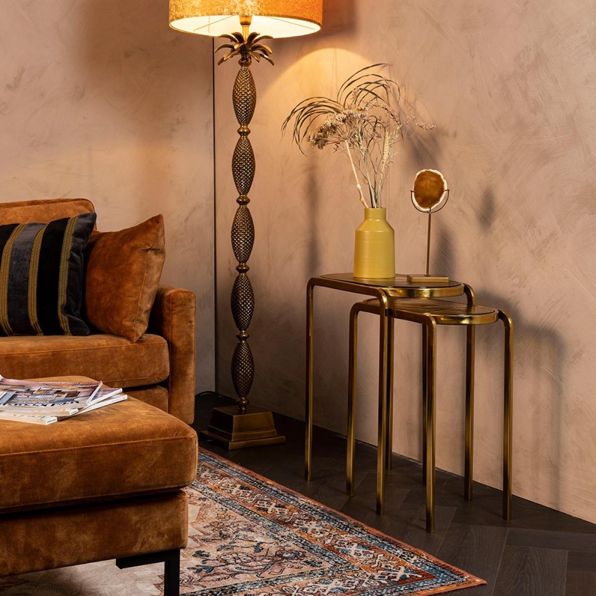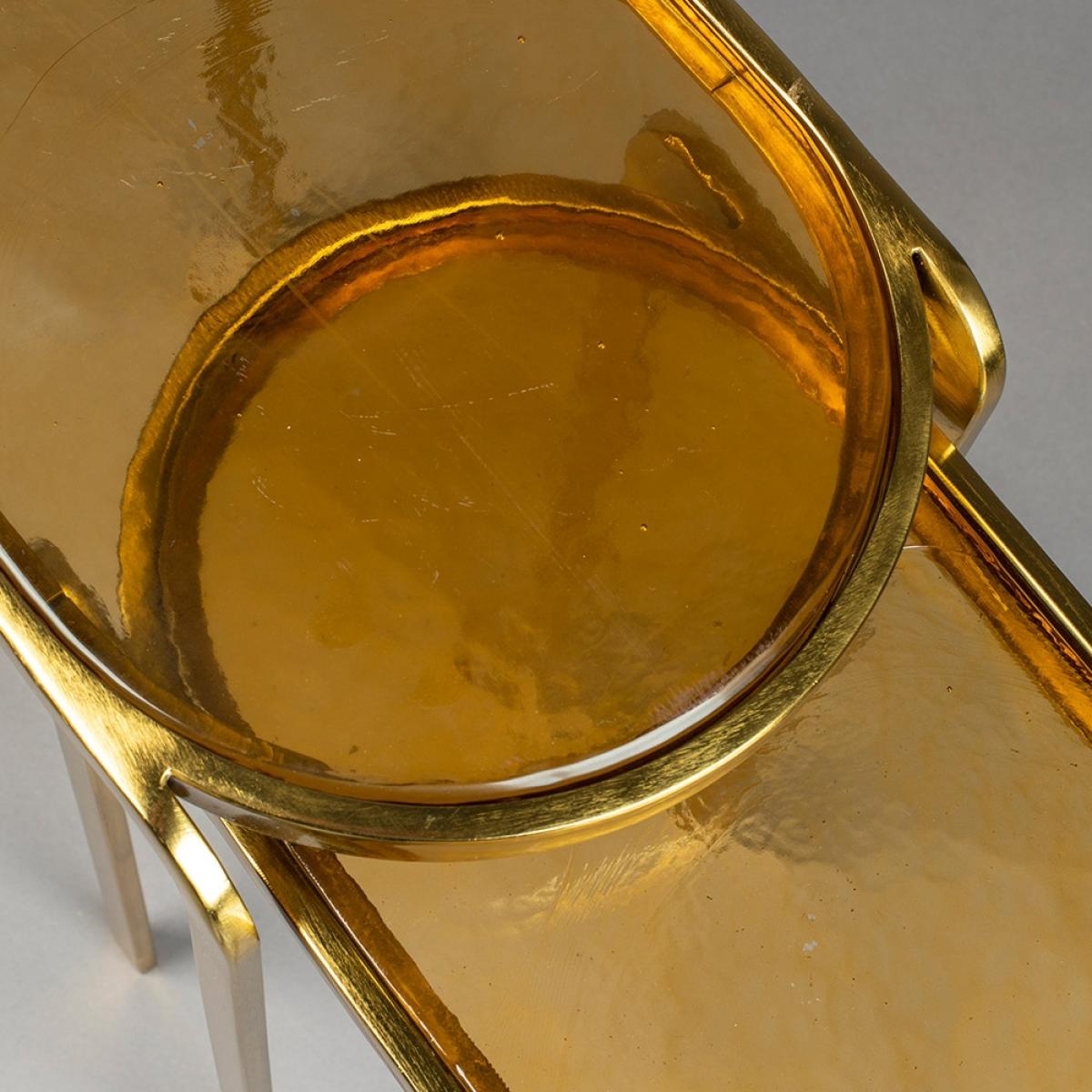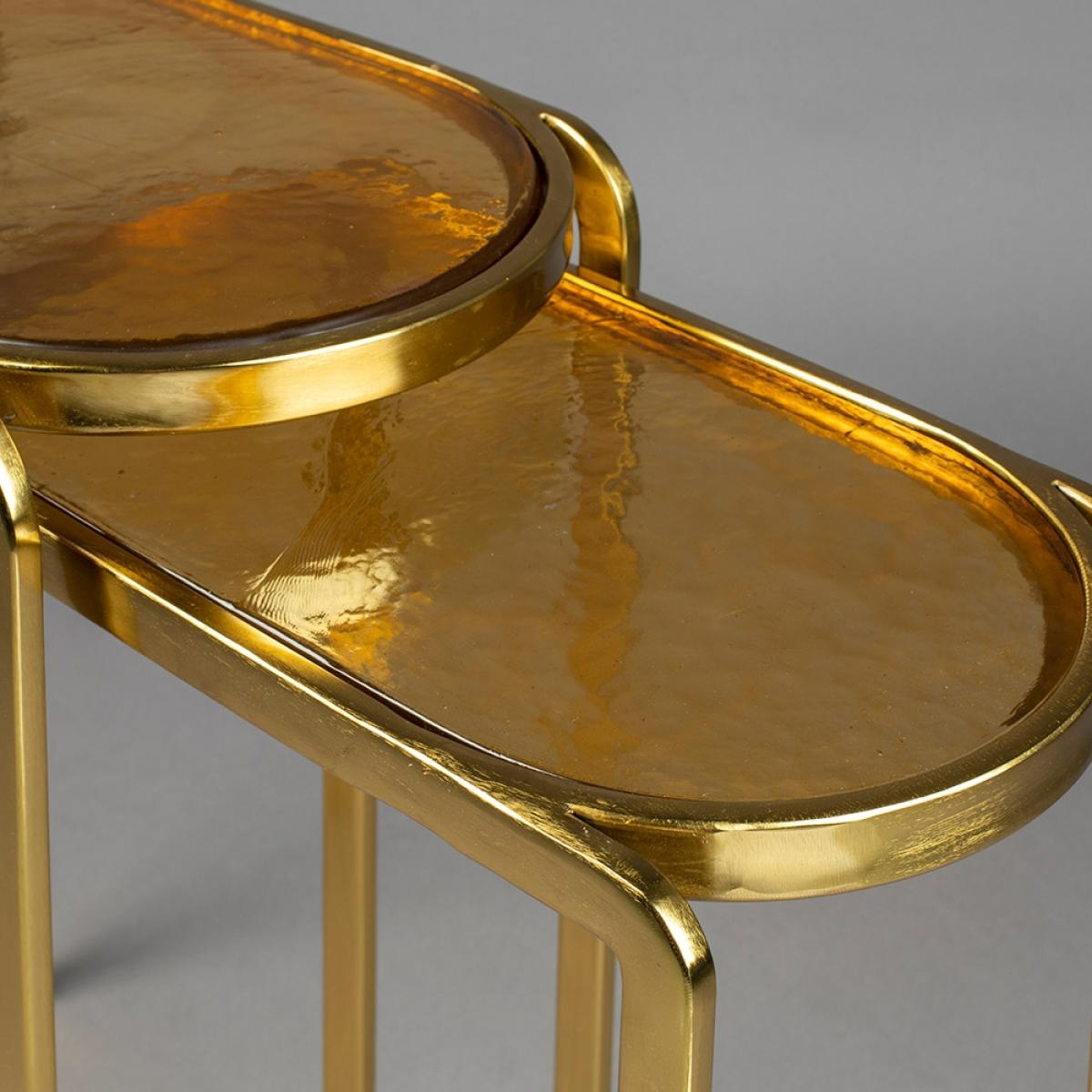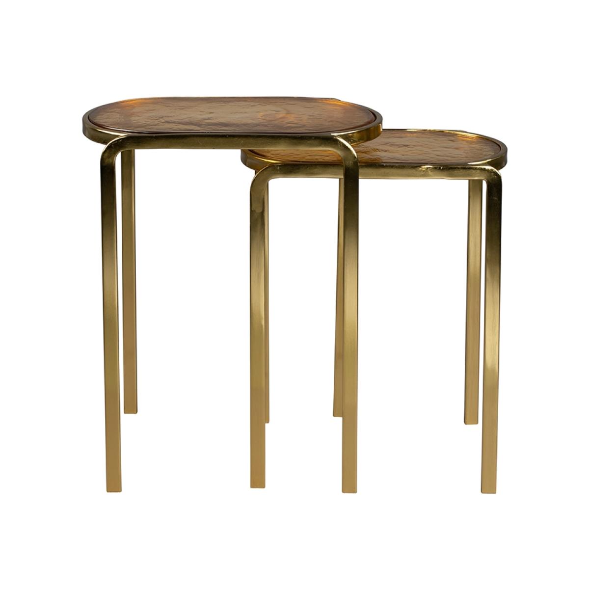 Not just 1 but 2 delightful tables; introducing the Set of 2 Bandhu Side Tables from Dutchbone. The sturdy and stylish metal frame showcases style, while the glass top takes care of the wow factor. Use for your morning cuppa or for that weekend well-needed bottle of wine! You'll always be prepared for when those unexpected guests randomly pop by, simply pull apart for everyone to enjoy. The glass has been beautifully crafted from leftover glass from bottle and glass industries, so each one is unique and has been beautifully cast into shape to finish this table off to its fullest potential. Featuring an amber-tinted top, this gorgeous pair are sure to make a statement wherever placed!.