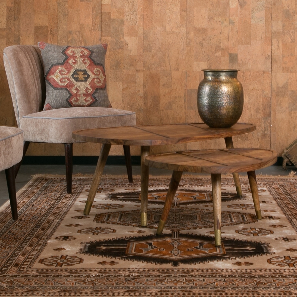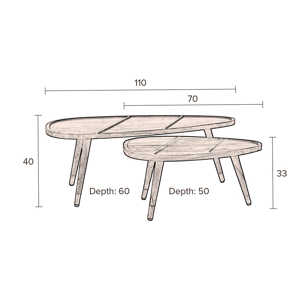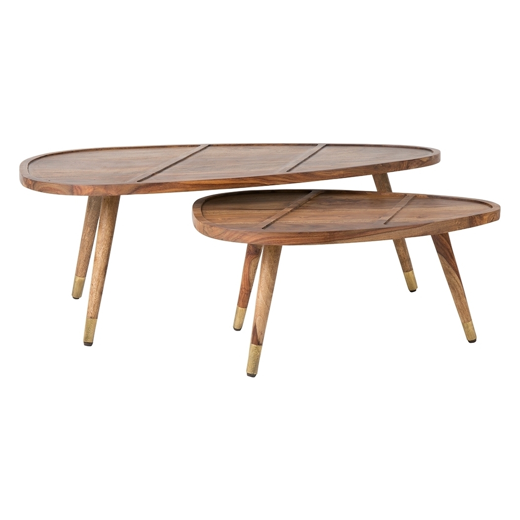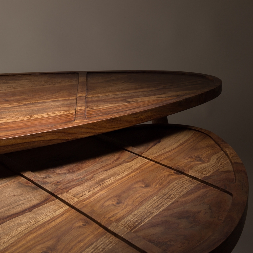 The stunning Sham Coffee Tables from Dutchbone are crafted from Sheesham wood (also called Rosewood), an Indonesian hardwood known for its durability, as well as its beautiful flamed patterns and varying colours. As a set of 2, the droplet-shaped Sham Coffee Tables overlap each other and can be arranged in an endless variety of positions to suit your space and the needs of your family. These stunning tables are made by hand, with carving to the wooden top - perfect for adding a warm, Indonesian feel to your home decor. This is one set of unique coffee tables that we promise are anything but a 'Sham'!.