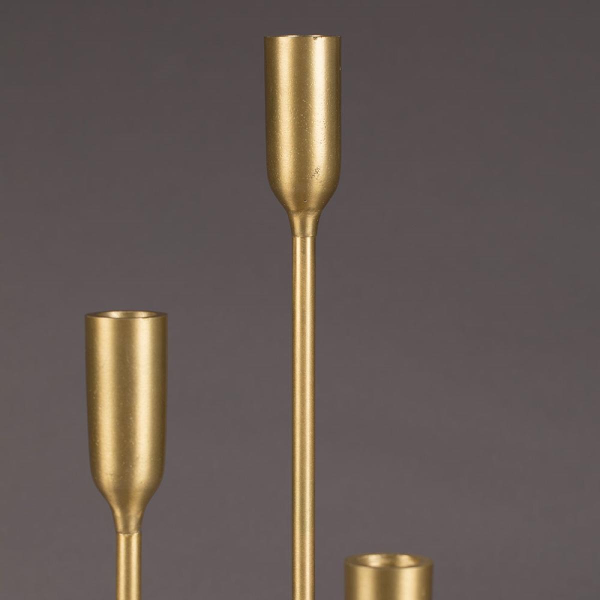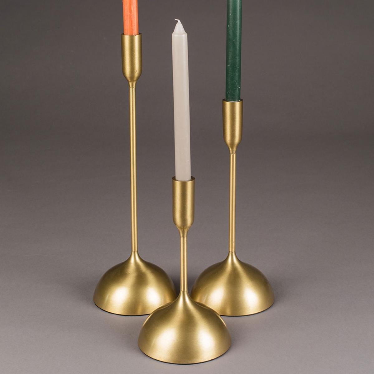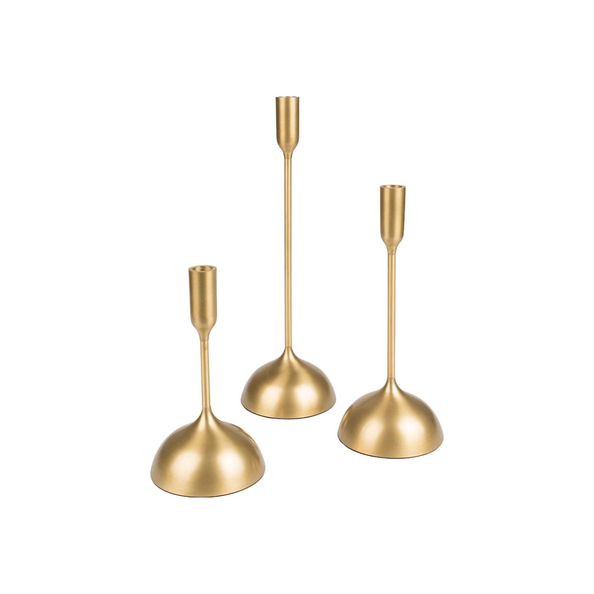 Create a cosy atmosphere with the Sesta Candle Holders from Dutchbone. Manufactured from aluminium and finished in a stunning gold, with gorgeous curves, this set of 3 candlestick holders will be the ideal finishing touch. Perfect for a bit of ambience at a dinner party or a statement on your coffee table. Place them together or split them up, however you style them they'll look beautiful.