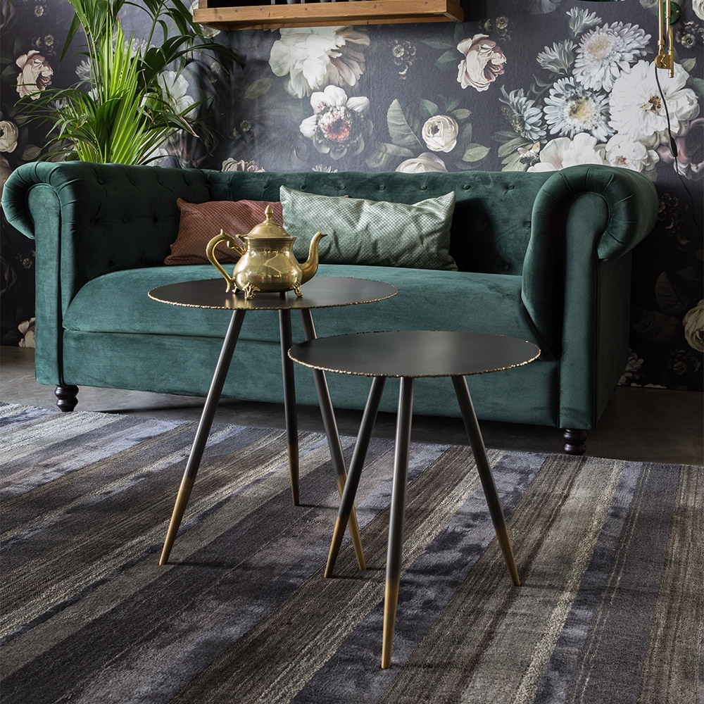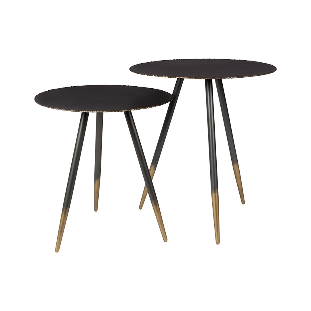 The Set of 2Stalwart Side Tables from Dutchbone offers up not only one table but two! It's all in the name! The powder coated iron table top has been finished with a welded edge exposing a beautiful gold colour and to top it all off an ombre effect has been added to the legs fading from black to brass, such a subtle but stunning addition. The perfect combination of elegant style with an industrial look. Being a set of two, these beauties can be overlapped and arranged in any way you please or used as stand-alone tables depending on your needs - the choice is yours!