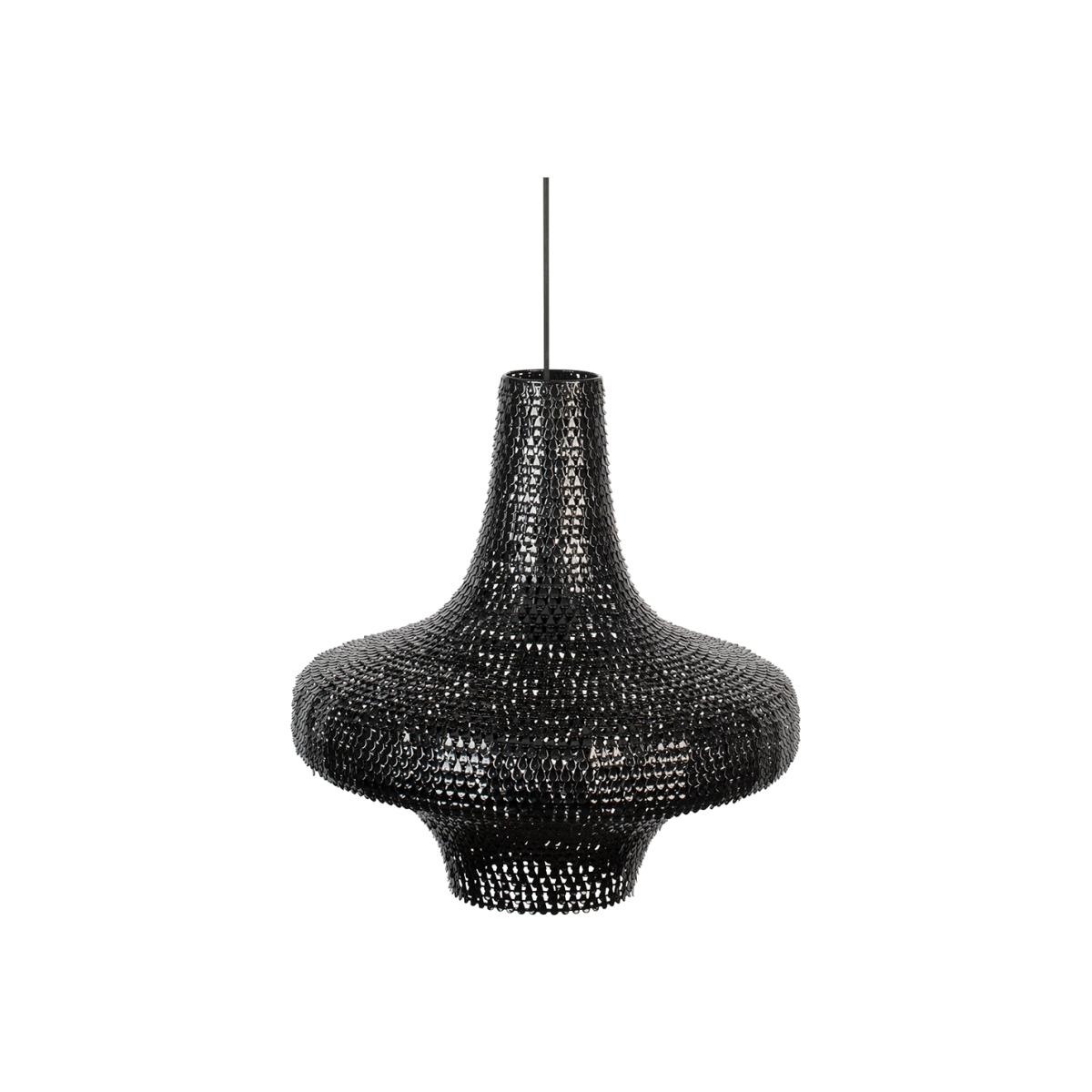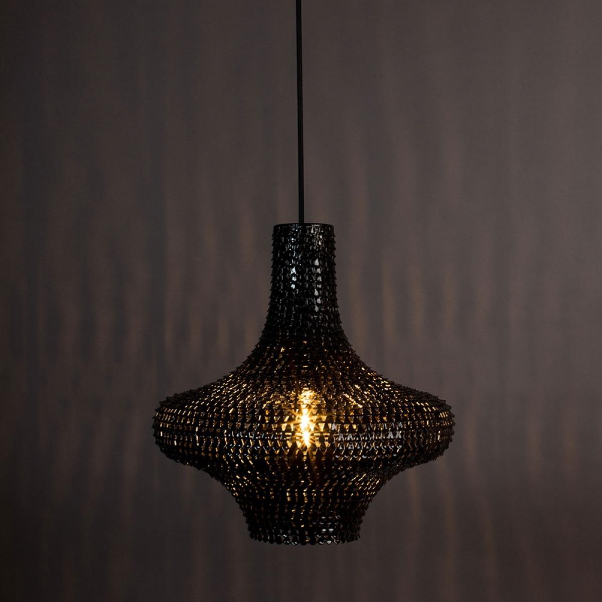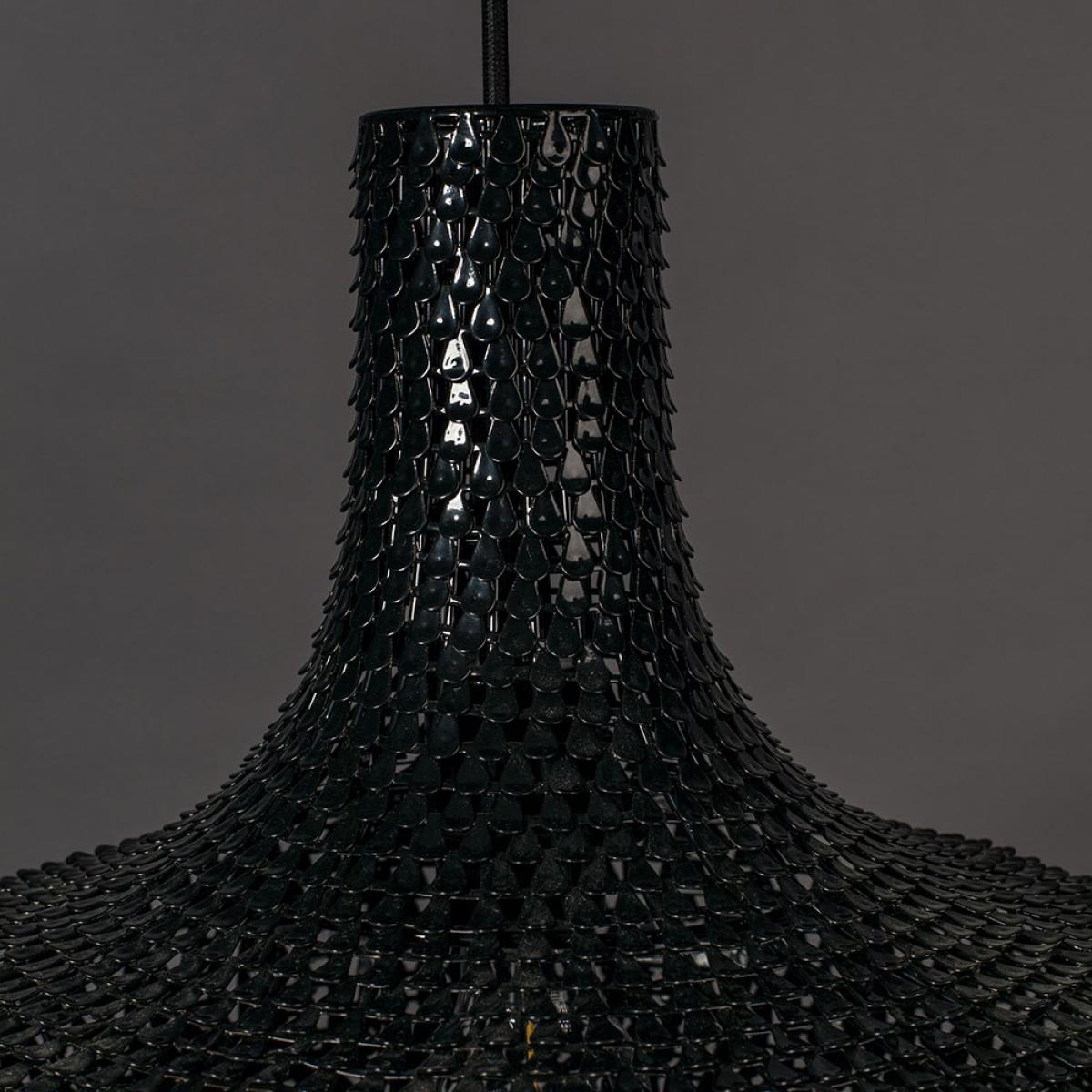 The stunning design of the Trooper Pendant Lamp is sure to make an impact in your home. Handmade from tiny pieces of metal with a shiny black finish, the curved shape certainly will look impressive over a dining table or breakfast bar. Keep them apart to make a coordinating lighting scheme or hang them side by side to create a gorgeous feature in your home.