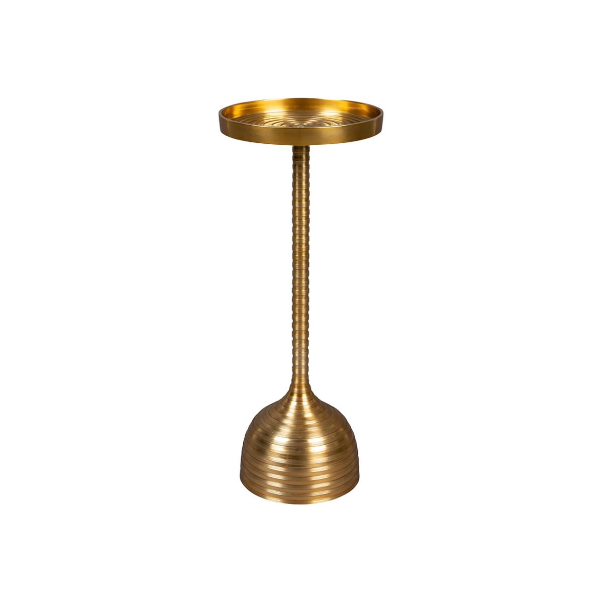No one can resist the golden Dutchbone Turner Side Table. The metallic gold brass finish draws in lovers of all things shiny! The unique shape has been inspired by hand-spun clay; with a weighty base supporting the slimline structure above, this elegant side table is like a work of art. The elongated stand balances a round tray top, perfect for glamorous cocktails. Or just your morning brew. Not taking up too much space, position the Turner Side Table next to an armchair deserving of it's beauty and ensure refreshments are never too far away.