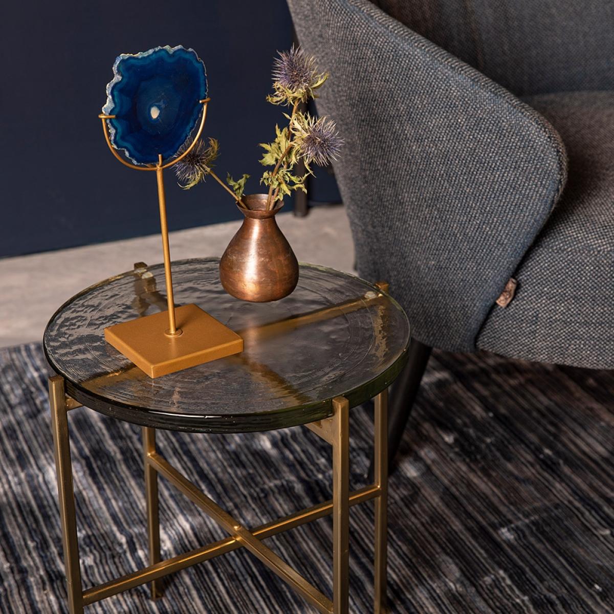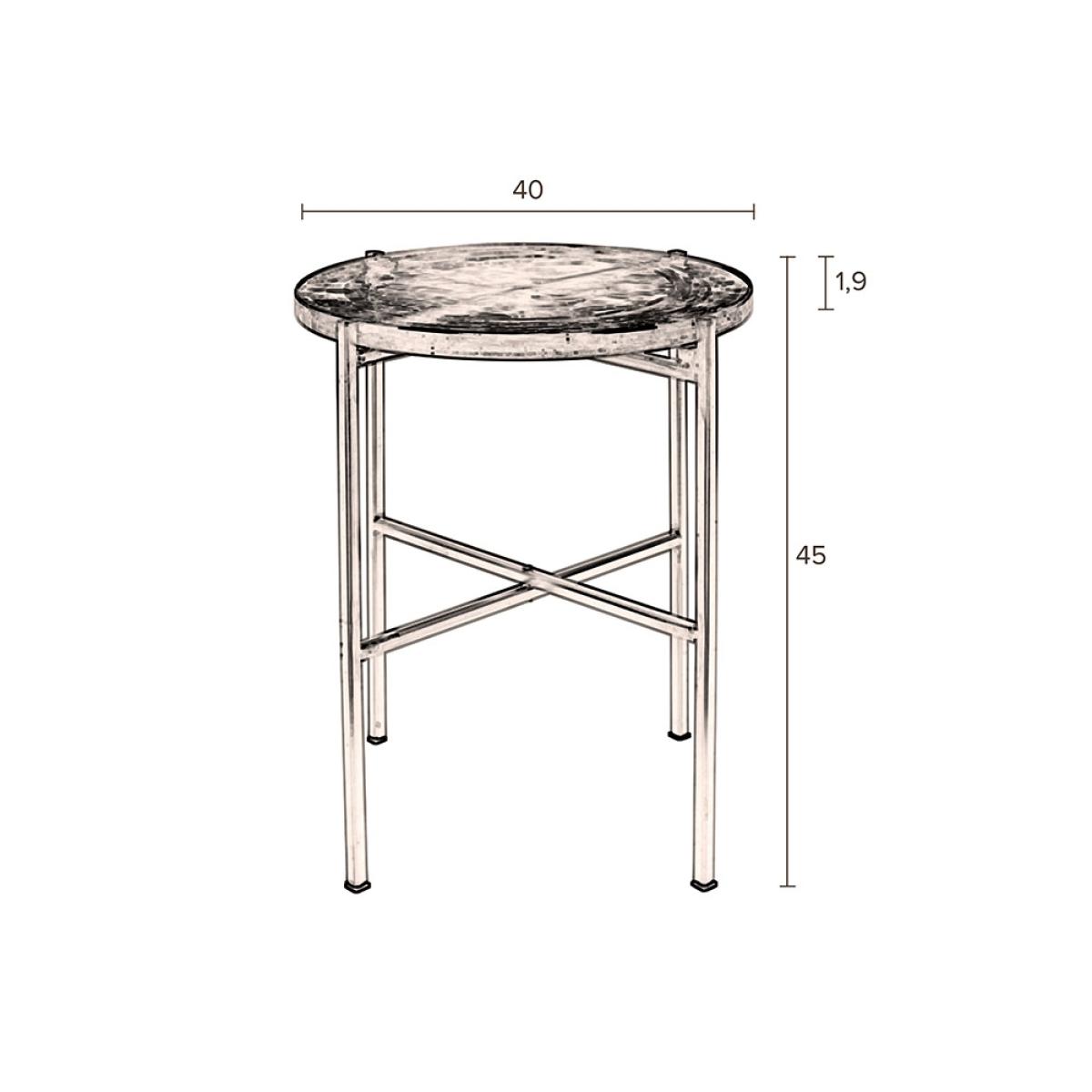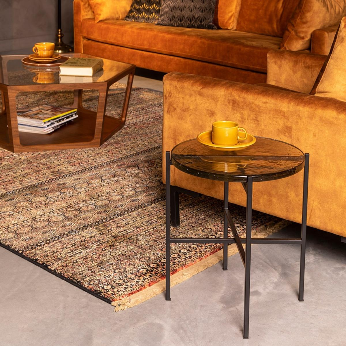 Fill your home with style with this Vidrio Side Table from Dutchbone; a small statement piece for any home. This iron framed table is a must-have if you love your space glowing in glamour. Perfect as a side table for that morning brew, or for that glass of bubbly after a long day. The sleek lined frame and recycled glass tabletop perfectly combine elegance and roughness as one, giving a wonderfully unique look to any room it's placed within. This table deserves to have a proud place for everyone to recognise your wonderful taste!.