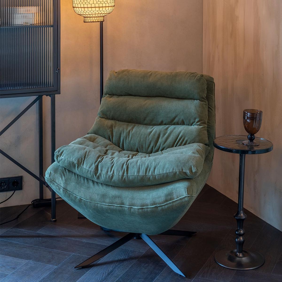 We challenge you to look at the Dutchbone Vince Lounge Chair and resist a sit down. We're yet to witness this level of willpower! Made with layer upon layer of comforting fillings and fabrics,t. His chair isn't for quick pits stops; once you're settled in you'll quickly succumb to it's charms. Designed with a gentle swivel base and curved seat, it's the perfect spot for cosying up with a book, listening to music or savouring a hot brew and losing track of time. Position yours in the living room, bedroom, home office or garden retreat - the retro silhouette and textured cord upholstery will transport your chosen room to a bygone era. Available in a choice of earthy tones, pair with vintage inspired decor and accessories to achieve a nostalgic look and feel!.