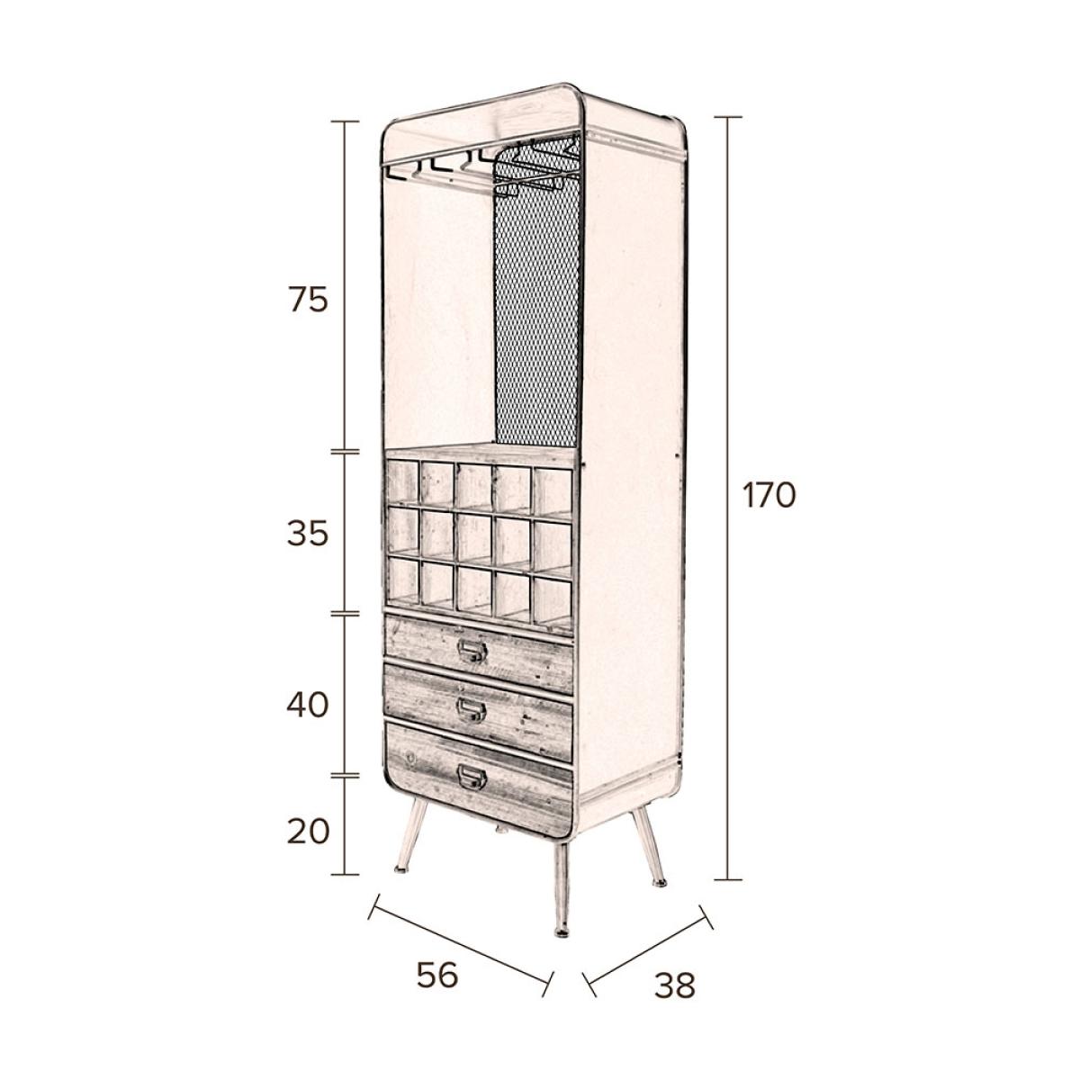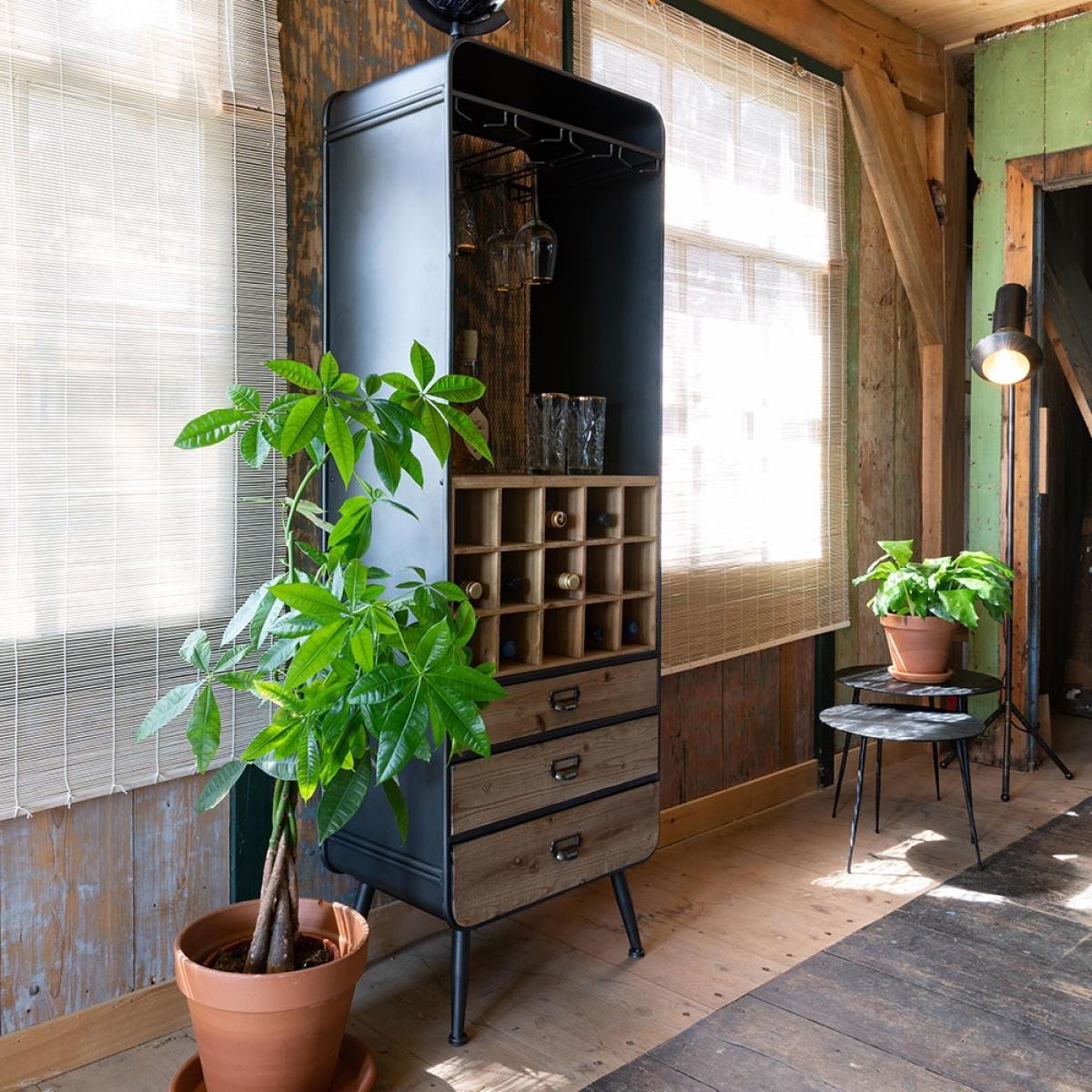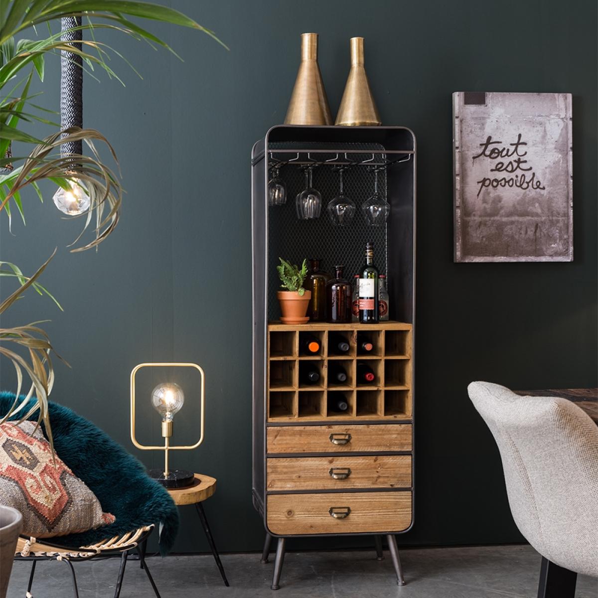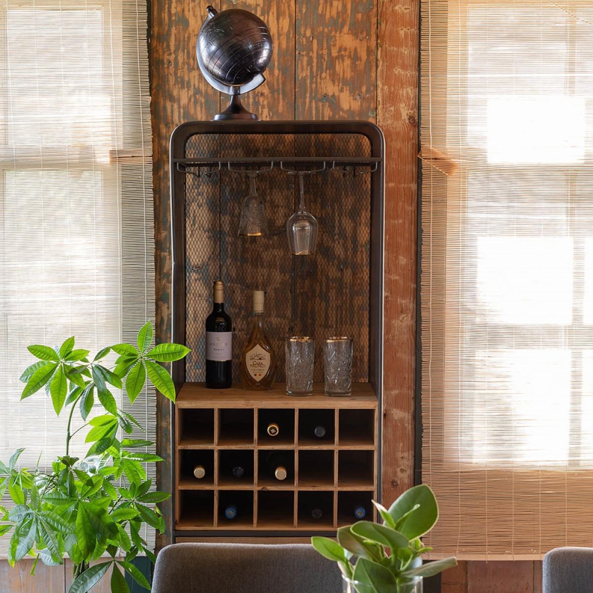 I love this piece for its blend of industrial charm and practical storage, making it a versatile addition to both contemporary and eclectic interiors. The slim profile fits well in smaller spaces, while the combination of drawers, wine racks, and hanging space offers functional organisation for your drinks and accessories. I’d suggest styling it with a few curated bottles or glassware on display to add personality, and complementing it with warm wood tones or metallic accents elsewhere in the room for a cohesive look. It’s particularly ideal in a living room or kitchen corner where style and practicality meet, doubling as a statement piece and a useful drinks station.