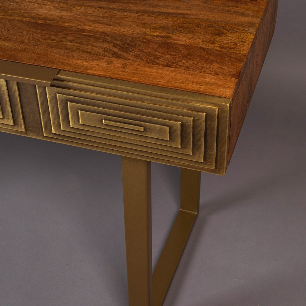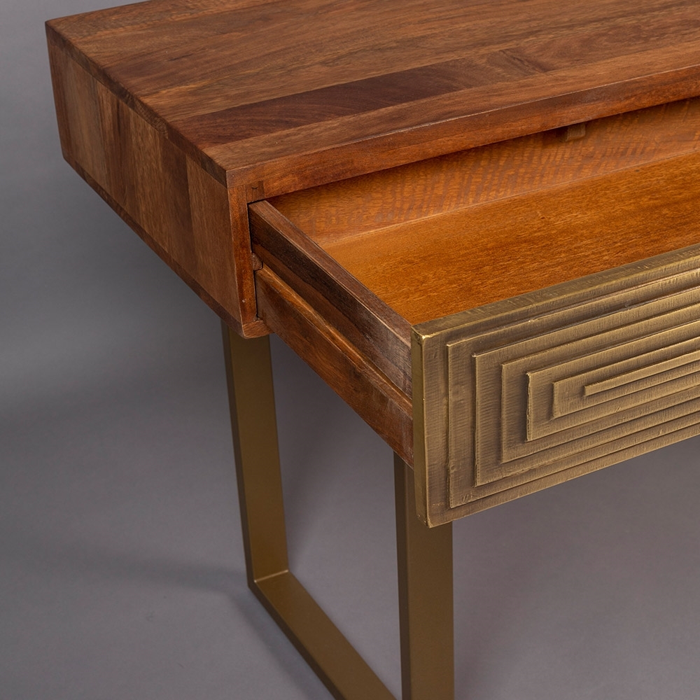 I really like the Dutchbone Vlan console table for its blend of natural wood and geometric detailing, which adds subtle visual interest without overpowering a space. It works particularly well in entryways or behind sofas, providing both style and practicality. I recommend styling it with a combination of statement lighting, a framed mirror or artwork, and a few curated decorative objects or plants to create a balanced and inviting look. Its versatile design makes it suitable for both contemporary and eclectic interiors, and the warm wood tone can be paired effortlessly with metals, textiles, or colour pops to add depth and character.