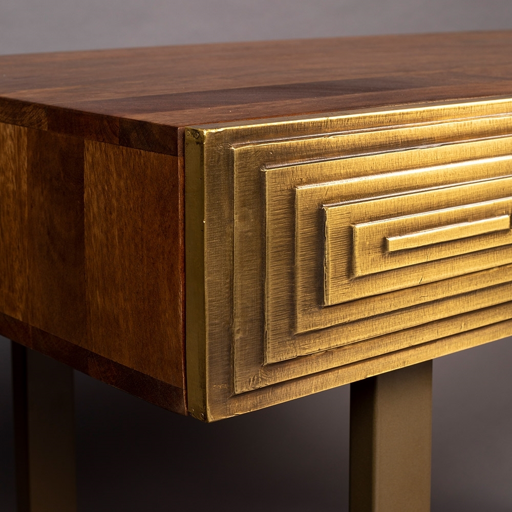 Licia mango wood bedside table with 1 drawer, with a natural finish and metal, 55 x 65 cm