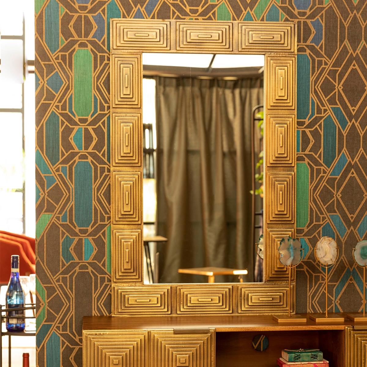 I love this mirror’s statement frame, which adds a touch of glamour without feeling overly ornate. It works well in both contemporary and eclectic interiors, bringing a subtle metallic accent that can elevate a neutral scheme or act as a focal point. Practical styling tips include hanging it in entryways to create a sense of space or above a console table for a chic, functional feature. Given its bold design, pair it with minimalist or pared-back decor to let it truly stand out, or combine it with other metallic accents for a curated, layered look. It’s versatile enough to enhance living rooms, bedrooms, or even bathrooms, depending on your style aesthetic.
