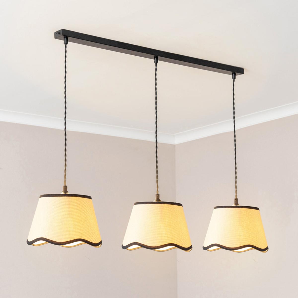 Transform your space with this matte black 3-drop bar E27 lamp holder, featuring 3 elegant Dutton scalloped shades, striking the perfect balance between modern industrial and vintage charm. Simply add the 3 bulbs and watch as the magic unfolds. Whether you're going for a contemporary loft feel or a cosy cafe aesthetic, this stylish lamp holder is sure to shine. Side effects include overwhelming admiration from visitors.