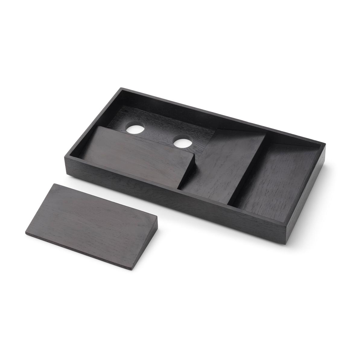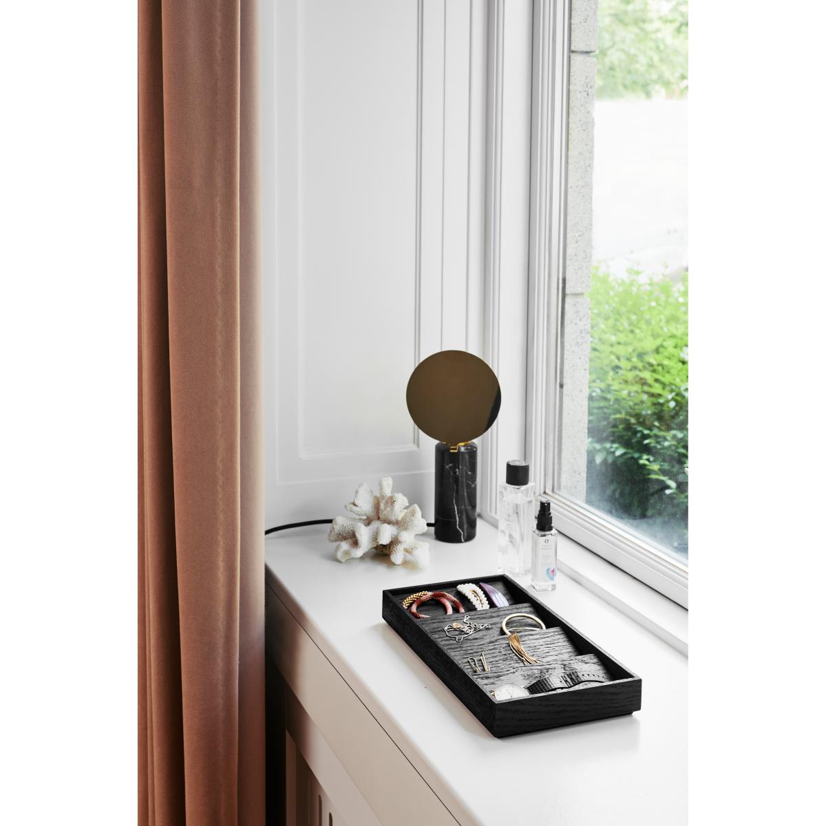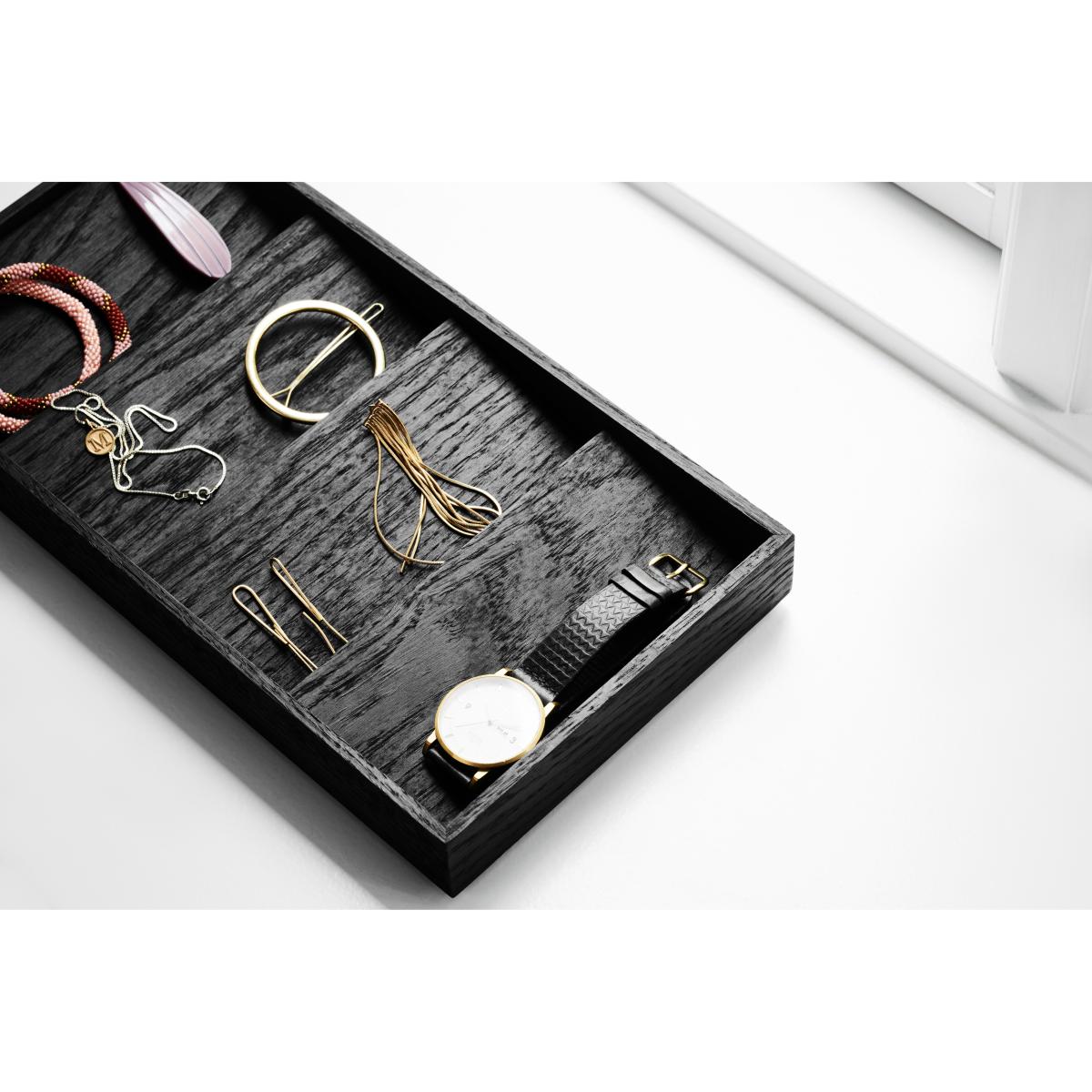 I love this little organiser because its sleek black finish adds a modern touch to any space while remaining versatile. It works particularly well in minimalist or contemporary interiors, but can also provide a stylish contrast in more eclectic settings. Practical styling tips include grouping it with other black or neutral storage pieces for a cohesive look, and using it on desks, bathroom counters, or shelves to keep smaller items tidy - from jewellery and stationery to cosmetics or keys. Its four compartments make it perfect for organising different items neatly, reducing clutter and enhancing overall orderliness in your space.