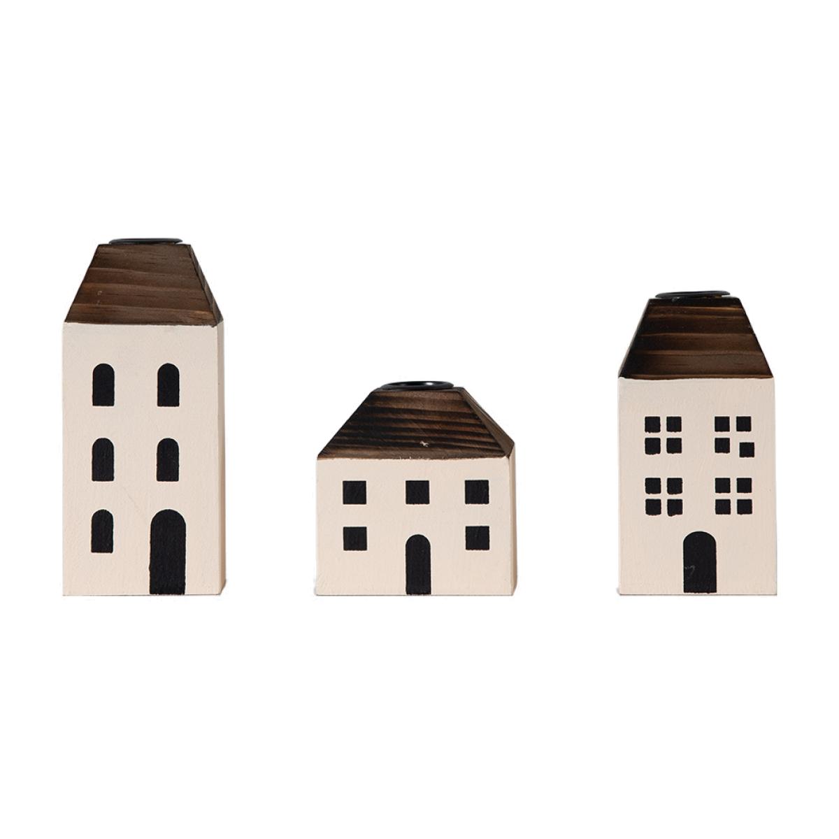A cosy, cute and whimsical trio. Each little house is an individual, with its own hand painted windows, dark wood roof and different heights. Create a quirky little village and fill your room with a warm festive glow.