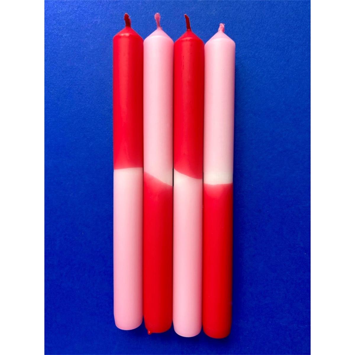 These pretty hand dyed candles from The Colour Emporium come in an array of colour palettes to suit any occasion. Beautifully subtle or wildly vivid these will add a pop of colour and ambience to any setting Unique and ethically made, these candles are created with both Stearin and Paraffin wax, which is Vegan and cruelty free. All the scraps of wax are re-melted and reused, all packaging can be recycled or reused, the packing peanuts dissolve and even the tape is made from paper Never leave a candle burning unattended, near flammable materials, drapes, furniture etc