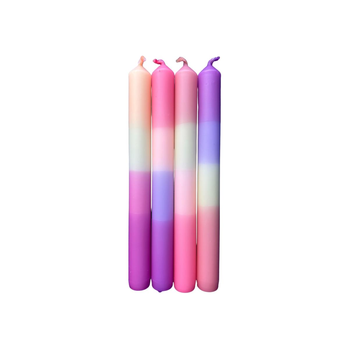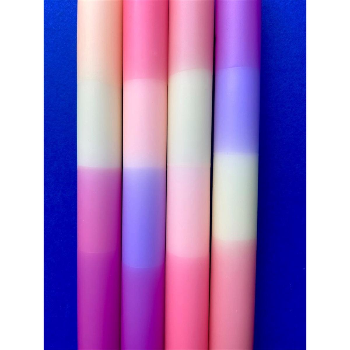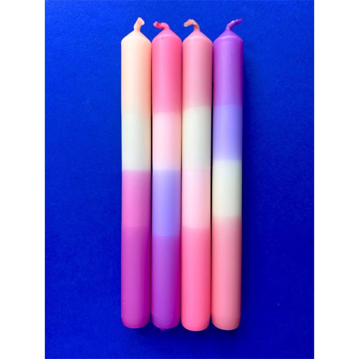 These pretty hand dyed candles from The Colour Emporium come in an array of colour palettes to suit any occasion. Beautifully subtle or wildly vivid these will add a pop of colour and ambience to any setting Unique and ethically made, these candles are created with both Stearin and Paraffin wax, which is Vegan and cruelty free. All the scraps of wax are re-melted and reused, all packaging can be recycled or reused, the packing peanuts dissolve and even the tape is made from paper Never leave a candle burning unattended, near flammable materials, drapes, furniture etc