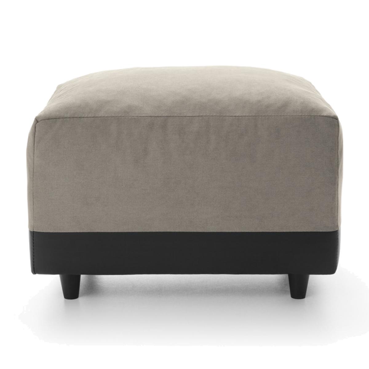The perfect modern classic footstool. Designed as a square pouffe, the Dylan footstool is a must have if you are picking up a Dylan sofa or chair. Designed with a black base and grey upholstery or a brown base with beige upholstery, this is a footstool you can use to raise and rest your legs or make it useful as a little table for your tea time. The soft structured cord chenille fabric blended with the faux leather fabric lend a luxuriously rich and comfortable touch. Light enough to be moved around for versatile use and sturdy enough to serve as an extra seat, this Dylan footstool is also priced to impress.