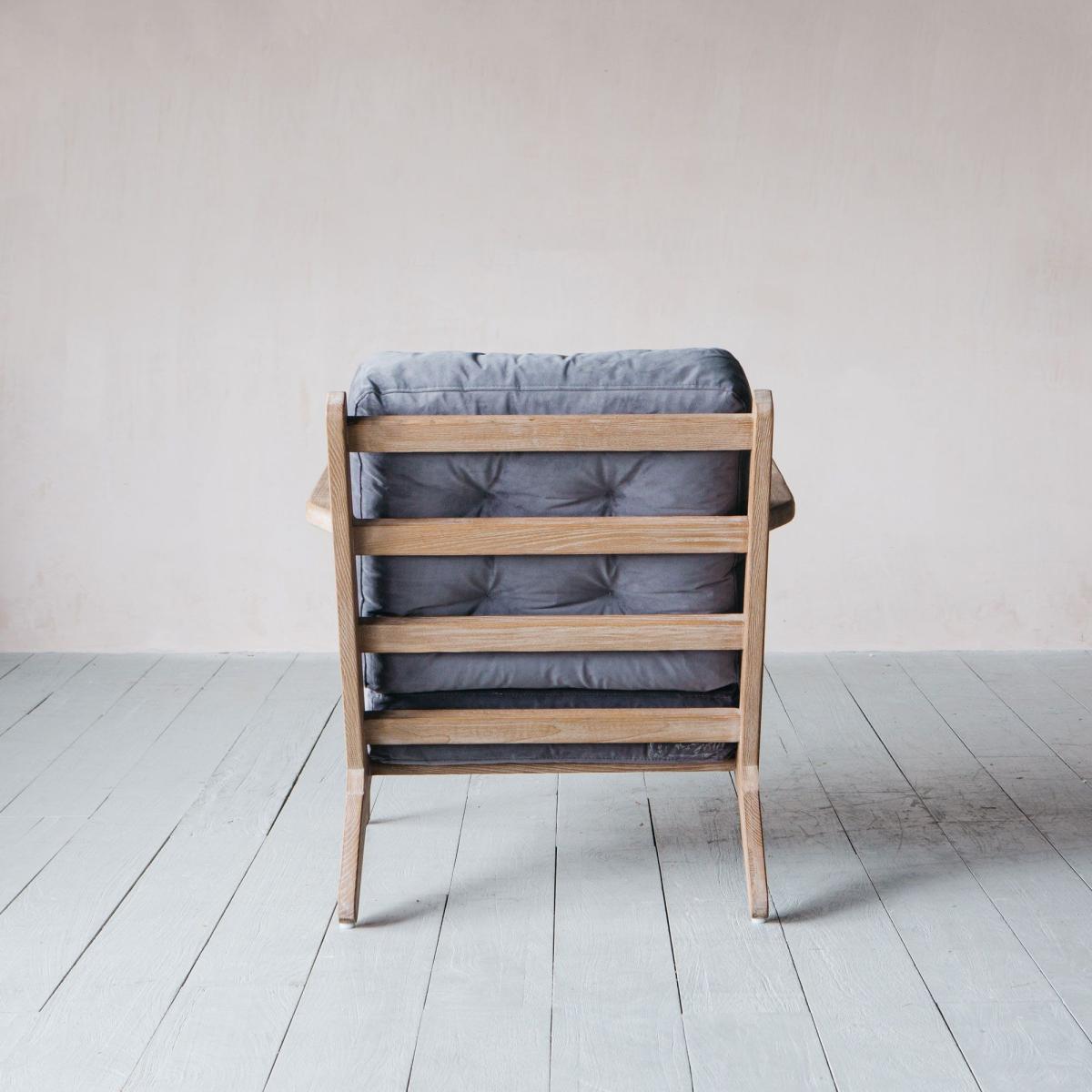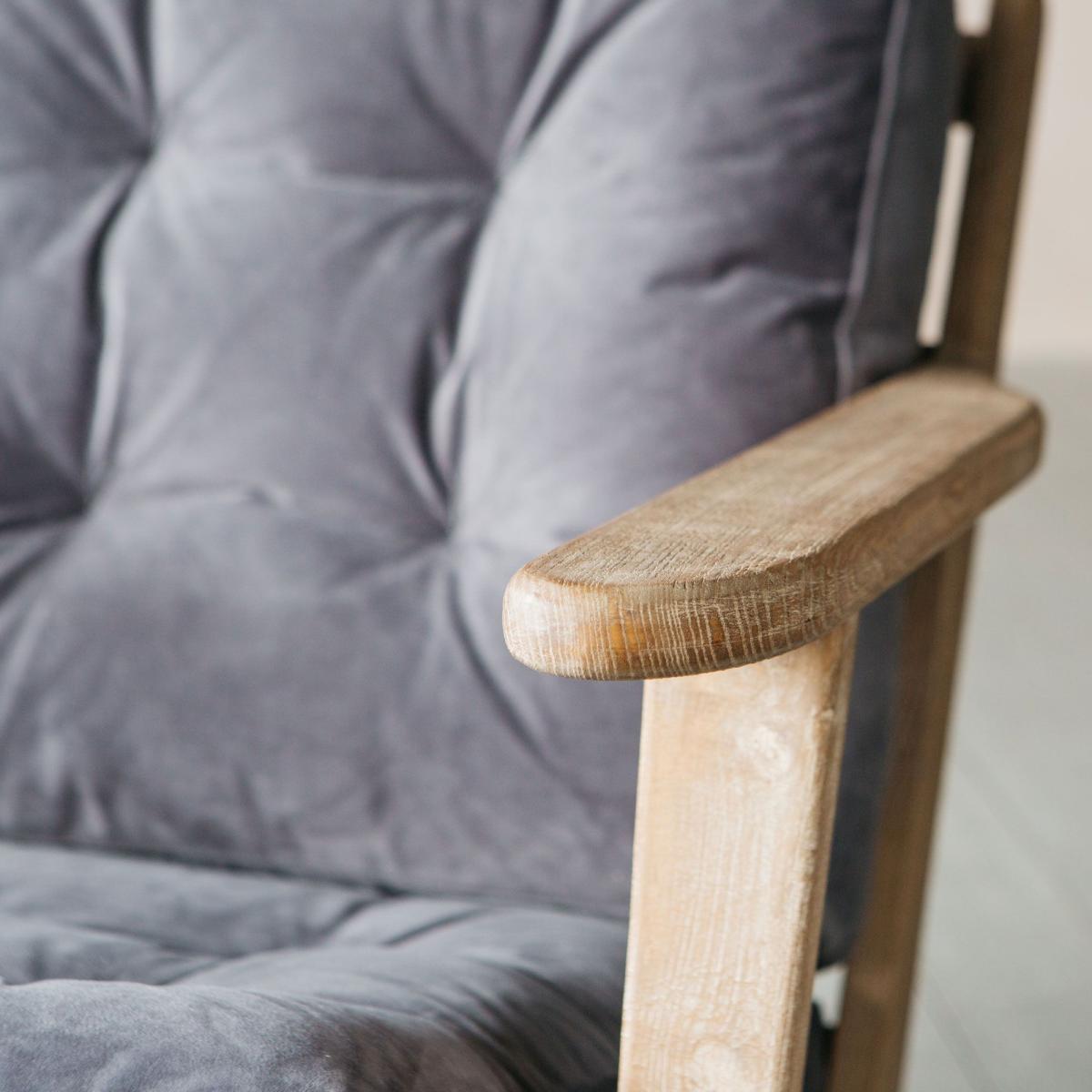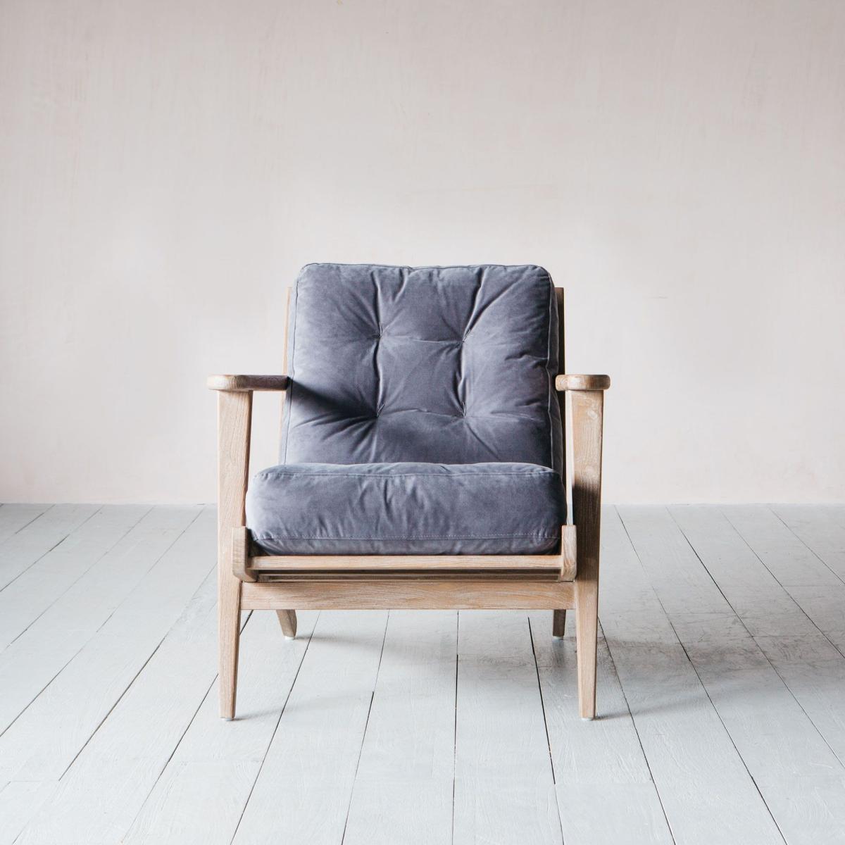 A mid-century inspired chair with a burnt finish to the ash wood and upholstered in rich grey sumptuous velvet. Featuring an exposed frame, sleek arms and button detailing, our Dylan armchair will make a stylish addition to your interior.