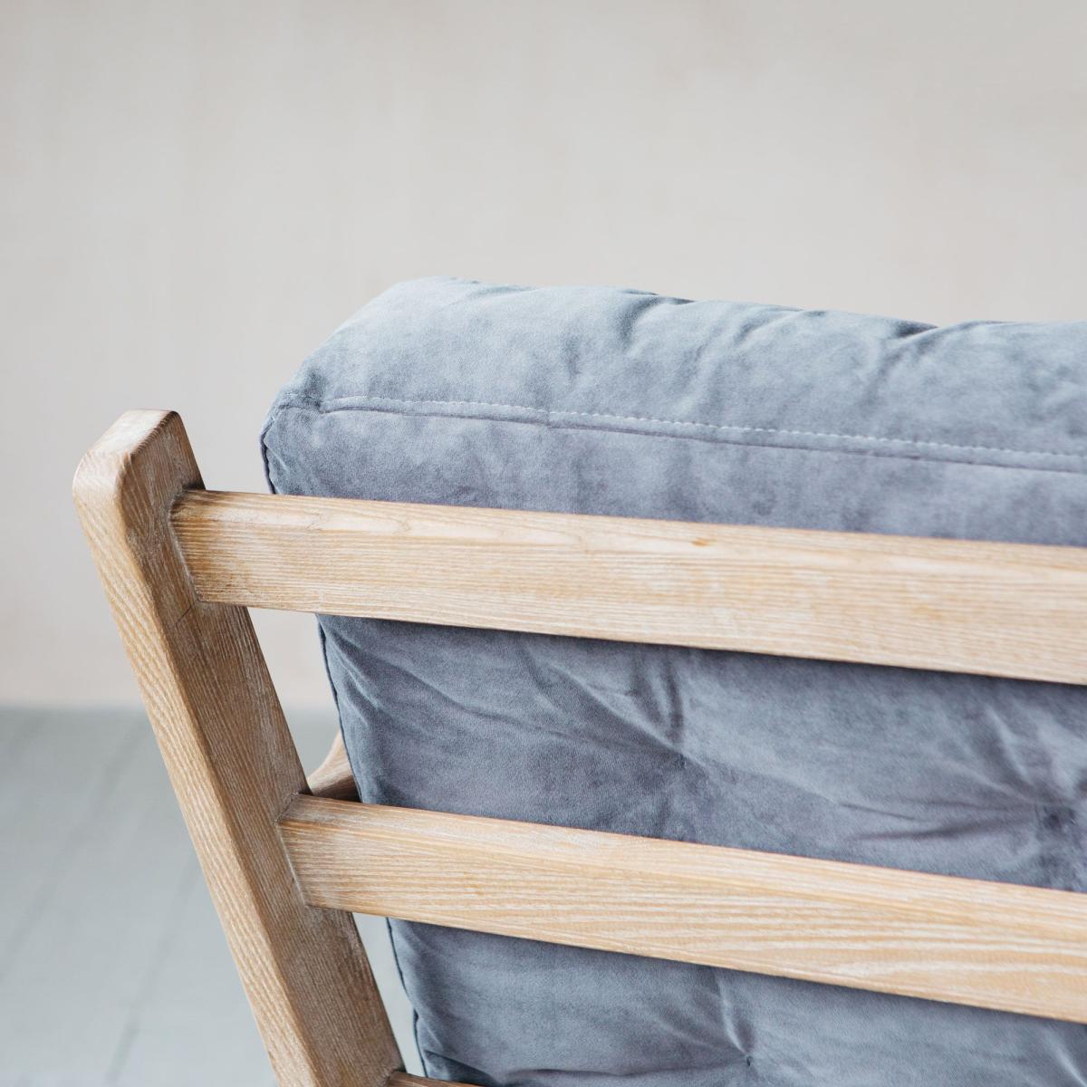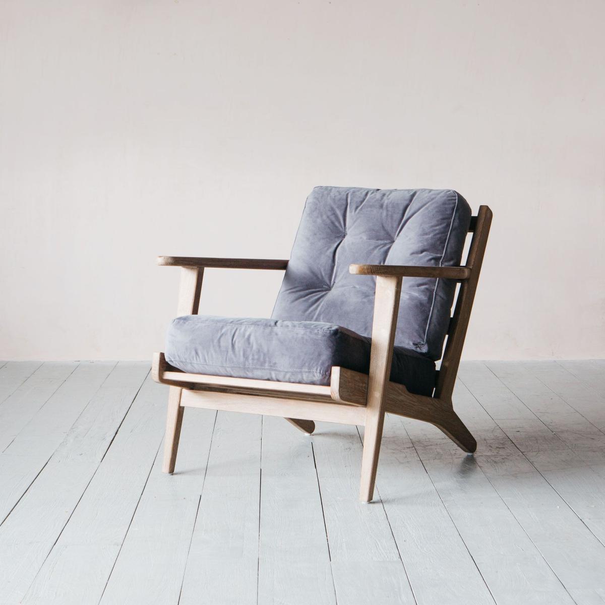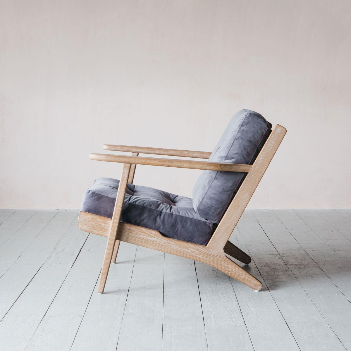 A mid-century inspired chair with a burnt finish to the ash wood and upholstered in rich grey sumptuous velvet. Featuring an exposed frame, sleek arms and button detailing, our Dylan armchair will make a stylish addition to your interior.