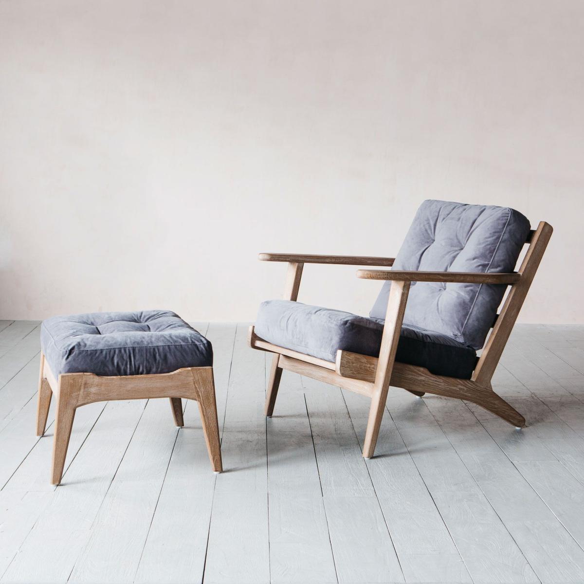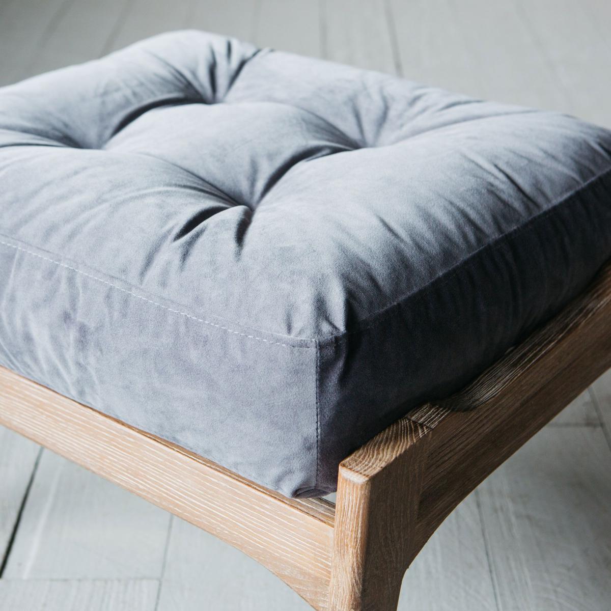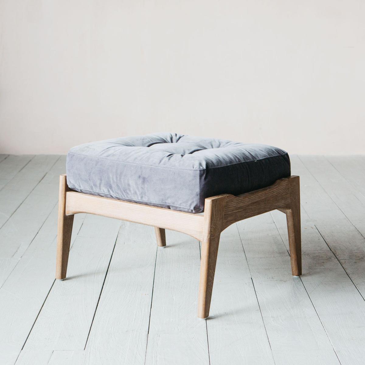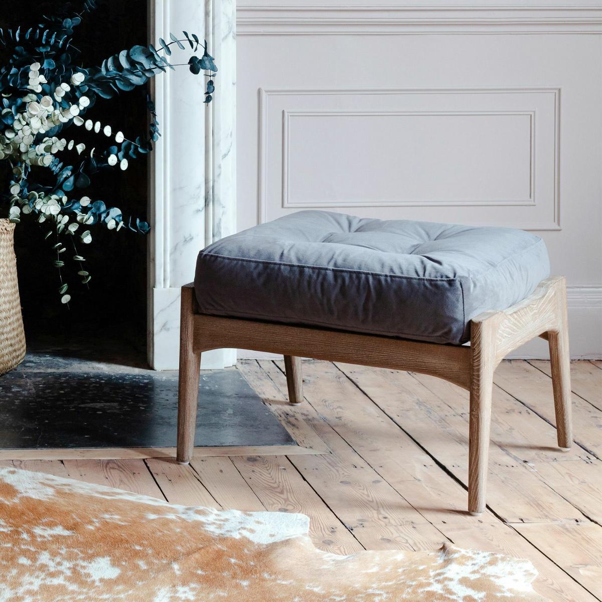 The sumptuous velvet accompaniment to your armchair, the Dylan footstool is made of burnt ash wood and upholstered in rich grey velvet.