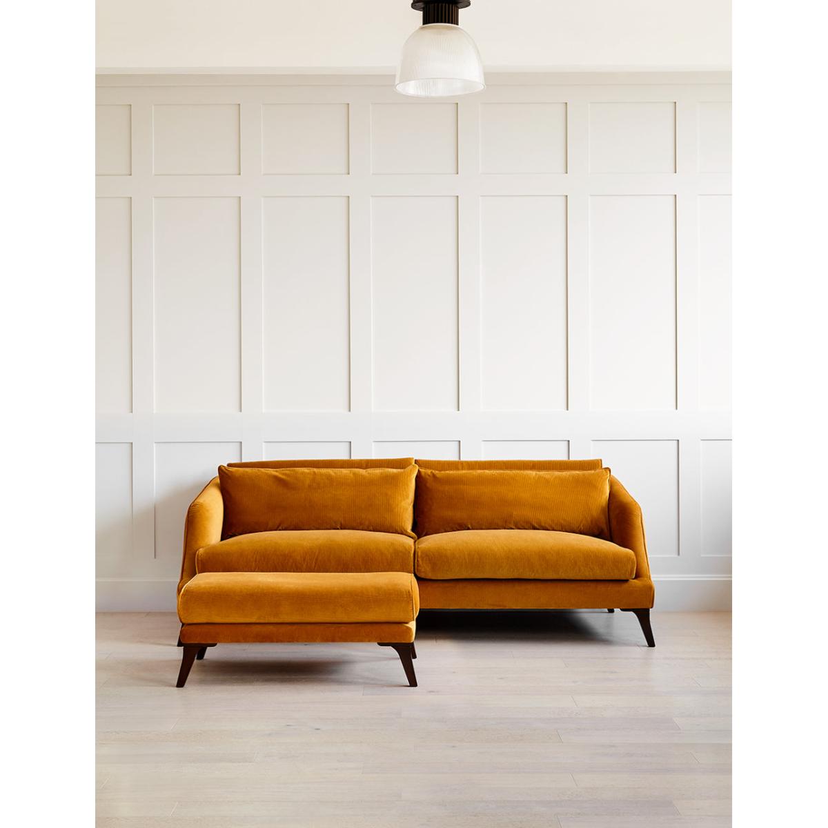 Introducing Dylan, one of our heritage sofas, originally designed in the 1970's. We love how Dylan's retro silhouette still feels fresh and contemporary, boasting deep seats perfect for snuggling. Simple legs, feather-filled cushions and a timeless design combine to present a versatile sofa that would fit into every home. Available as a three or four seater. An armchair and footstool are also available. Photographed here as a Three Seater in Reef Cotton with Driftwood Legs. Also shown as a Four Seater in Honey Eton Cord with Dark Mahogany Legs. All other images are computer generated as a colour reference with a Driftwood leg. We recommend you order a free fabric swatch to see your chosen material up close before ordering your sofa!