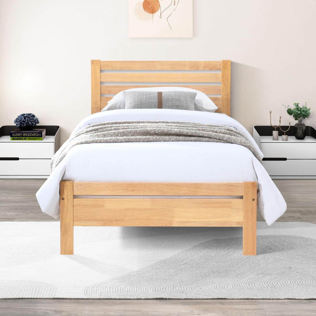 Our Dylan solid wood single bedframe is perfect for bedrooms of all styles. A simple and classic bed design of unfussy straight lines gives this a definite Scandi look, and the warm colour keeps it bright but adds some rustic touches. This bed is a great staple that will last through trend and decor changes we love a versatile and timeless piece that still manages to land that modern look. Constructed from sustainably sourced solid rubberwood with a lovely wood stain finish, this bedframe is sturdy and made to last. Sat slightly raised on squared legs, there's room for storage underneath. Simple assembly required with easy-to-follow instructions provided. Mattress not included. Available in a range of colours and sizes, so check out the full Dylan bed range today!