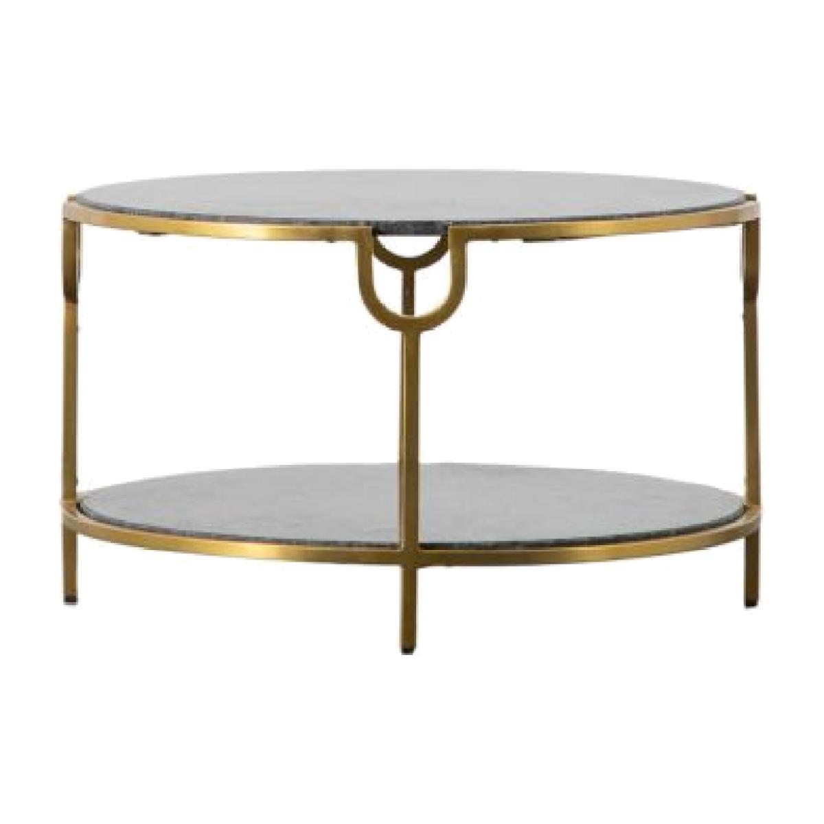 Add a touch of Luxe to a room with this beautiful coffee table which combines natural stone with a metal frame to create this stunning piece. The frame features eye-catching design detail around the top to add interest and has a brushed brass finish, which pairs beautifully with the black granite. There is a matching side table, and both are also available with white marble.