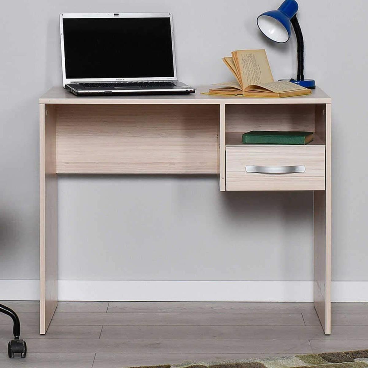 Dynamic Melamine Oak Computer Desk with Drawer and Shelf - Oak