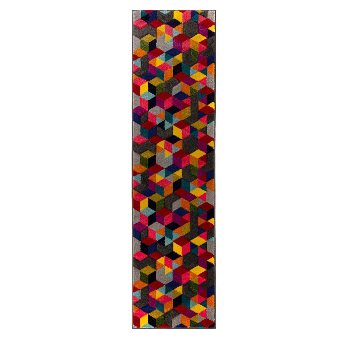 Beautifully created in a geometric design, this ravishing runner features a bright and bold colourway. Crafted with a soft short pile type, this trendy rug provides minimal shedding properties and utmost comfort. This is a hard wearing machine-made rug. When opening, re-roll your rug pile out and leave in a warm room for 24 hours before putting in place, this will help to reduce wrinkles and curling from packing. Do not pull any loose threads, please cut them carefully with scissors to remove. Avoid prolonged exposure to direct sunlight as this may cause fading of the colour. Turn your rug regularly to ensure even wear and to reduce pressure marks from furniture. Before using any cleaning products on your rug, test on an inconspicuous area first to ensure it does not affect the colour. Clean spills immediately by blotting with a clean dry white cloth - do not rub as this may stain the fibres. Vacuum your rug regularly to remove everyday dirt, we recommend the use of a suction type vacuum cleaner as a rotating vacuum brush can cause damage to the pile surface.