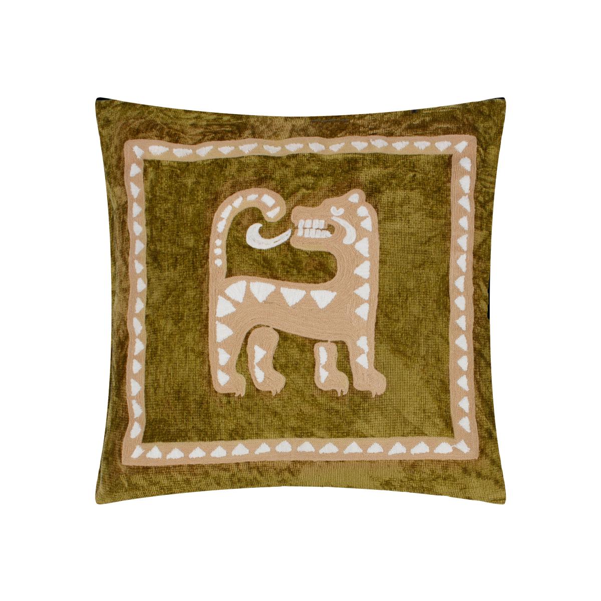 Dynasty Tiger Square Cushion Green