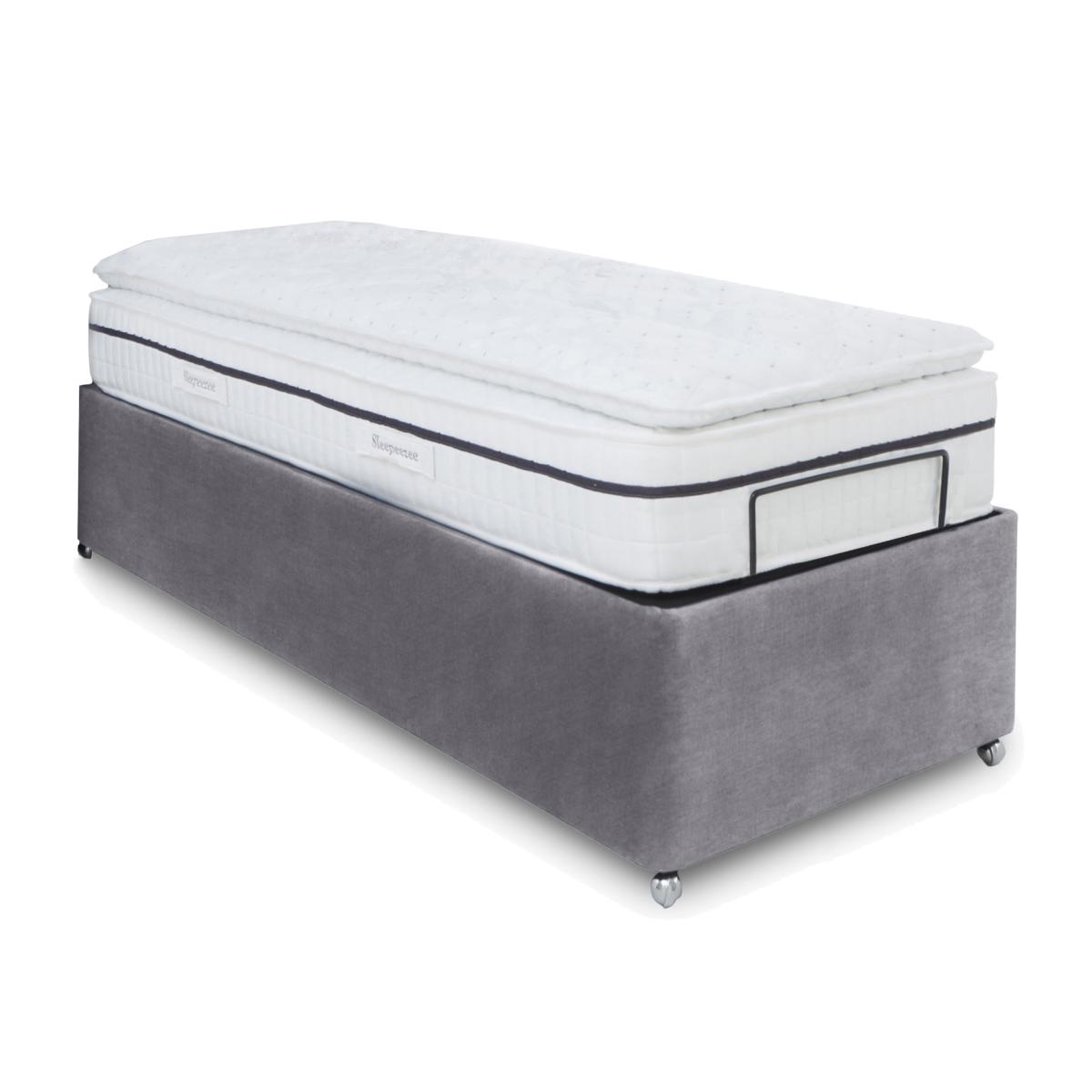 The next generation of adjustable beds is here. The adjustable bed frames and divan bases in our E-Motion collection do far more than you might expect. Opt for one with built-in massage functionality for even more relaxation. Dual-adjustable bases mean that both sides of the bed can be operated independently to suit each partner’s comfort needs. And thanks to smooth electric-powered mechanisms and wireless remote controls, finding the perfect position is smooth and simple. The E-Motion collection includes a wide range of stylish upholstered bed frames, divan bases complete with headboards and mattresses. Made in the UK and only at Furniture Village. Beautifully upholstered and with generous underbed storage, this electric-powered, remote-controlled adjustable divan base makes getting comfy in bed so much easier. Why you'll love it Find perfect comfort for better sleep with this adjustable ottoman divan base. And you’ll love the roomy hidden storage compartment. A simple wireless handset makes this bed so easy to adjust. Use the handy memory function to quickly return to your favourite comfort position. There’s even a weightless-feel pre-set position for TV watching. This divan base promotes restorative sleep by minimising discomfort that might wake you up. Adjustable beds can also reduce back ache, improve blood circulation and reduce snoring. It’s ideal if you need a little help getting in and out of bed. An ethical choice – this ottoman divan base is made with FSC-sourced wood. In a wide selection of fashionable upholstery fabric options. Designed and handcrafted just for Furniture Village. Made in the UK. Also available with 2-person adjustability and massage function. And with a choice of stylish, luxuriously cushioned headboards. This adjustable ottoman divan base is part of our E-Motion range. What you need to know Mattress sold separately. To ensure bed base and mattress compatibility, consider a mattress from the E-Motion range. Please check the suitability of any mattress you are considering for this adjustable base. Available in single and king sizes. This ottoman divan base opens at the end. Maximum mattress weight is 40 kg for the single ottoman base and 80 kg for the king ottoman base. Please keep hands clear of the mechanism when opening and closing the ottoman. Do not sit on this adjustable bed with the foot end in a raised position. Clean regularly using a soft brush or vacuum with the curtain attachment. Deal with any spills promptly. Professional cleaning advised for oil- and grease-based stains. Some fabrics can show wear on areas of more use or in direct sunlight. Shop our E-Motion range for a huge choice of bed frames, divan bases, massage beds, mattresses and more.