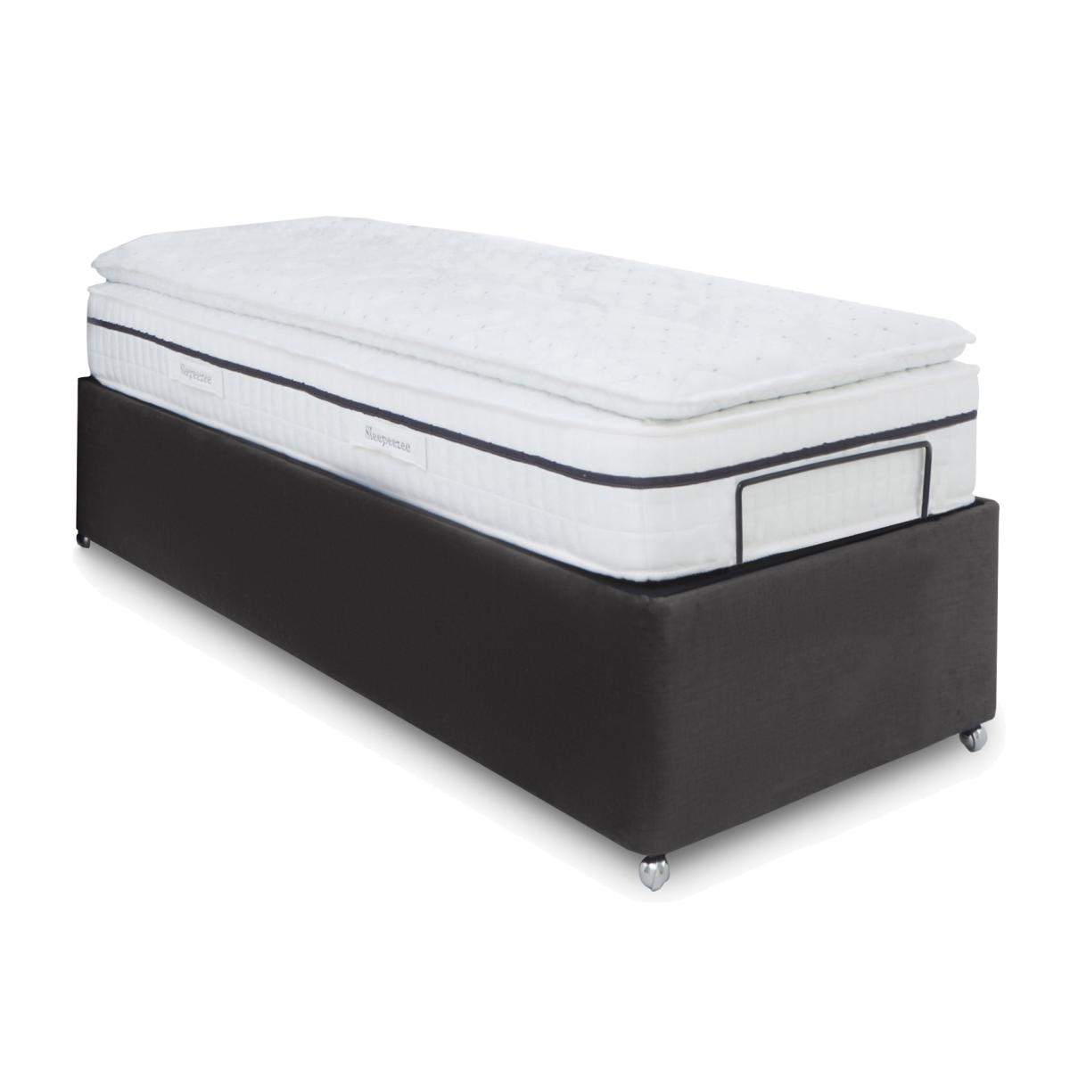 The next generation of adjustable beds is here. The adjustable bed frames and divan bases in our E-Motion collection do far more than you might expect. Opt for one with built-in massage functionality for even more relaxation. Dual-adjustable bases mean that both sides of the bed can be operated independently to suit each partner’s comfort needs. And thanks to smooth electric-powered mechanisms and wireless remote controls, finding the perfect position is smooth and simple. The E-Motion collection includes a wide range of stylish upholstered bed frames, divan bases complete with headboards and mattresses. Made in the UK and only at Furniture Village. Beautifully upholstered and with generous underbed storage, this electric-powered, remote-controlled adjustable divan base makes getting comfy in bed so much easier. Why you'll love it Find perfect comfort for better sleep with this adjustable ottoman divan base. And you’ll love the roomy hidden storage compartment. A simple wireless handset makes this bed so easy to adjust. Use the handy memory function to quickly return to your favourite comfort position. There’s even a weightless-feel pre-set position for TV watching. This divan base promotes restorative sleep by minimising discomfort that might wake you up. Adjustable beds can also reduce back ache, improve blood circulation and reduce snoring. It’s ideal if you need a little help getting in and out of bed. An ethical choice – this ottoman divan base is made with FSC-sourced wood. In a wide selection of fashionable upholstery fabric options. Designed and handcrafted just for Furniture Village. Made in the UK. Also available with 2-person adjustability and massage function. And with a choice of stylish, luxuriously cushioned headboards. This adjustable ottoman divan base is part of our E-Motion range. What you need to know Mattress sold separately. To ensure bed base and mattress compatibility, consider a mattress from the E-Motion range. Please check the suitability of any mattress you are considering for this adjustable base. Available in single and king sizes. This ottoman divan base opens at the end. Maximum mattress weight is 40 kg for the single ottoman base and 80 kg for the king ottoman base. Please keep hands clear of the mechanism when opening and closing the ottoman. Do not sit on this adjustable bed with the foot end in a raised position. Clean regularly using a soft brush or vacuum with the curtain attachment. Deal with any spills promptly. Professional cleaning advised for oil- and grease-based stains. Some fabrics can show wear on areas of more use or in direct sunlight. Shop our E-Motion range for a huge choice of bed frames, divan bases, massage beds, mattresses and more.