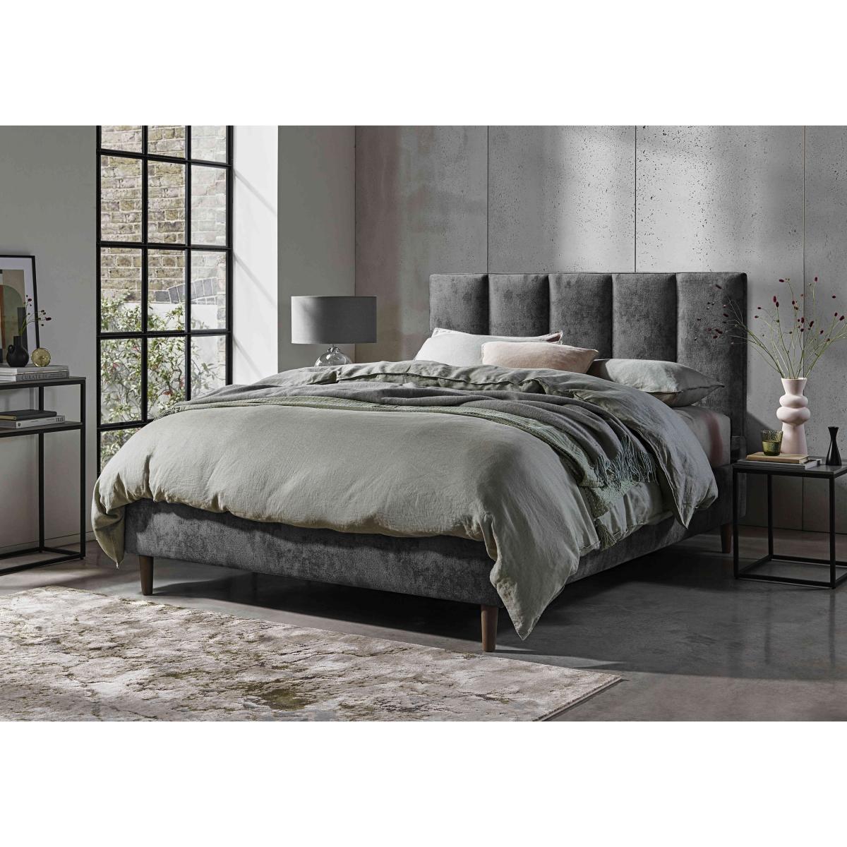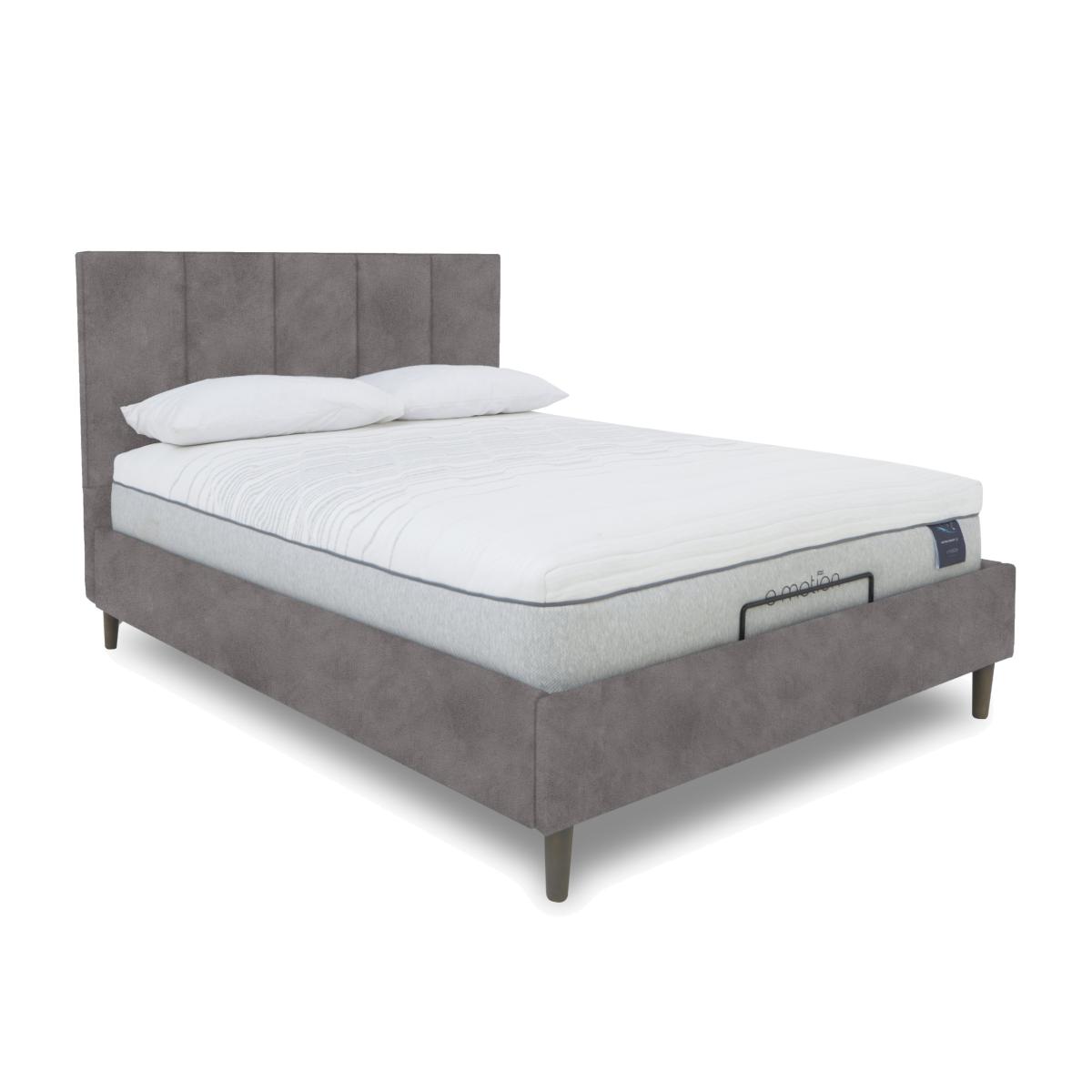 The beautifully fluted headboards of the bed frames in our Aiko range are what might first catch the eye, but it’s the exceptional comfort offered by their adjustable bases that will leave a lasting impression. Offered in a choice of sizes, these electric-powered, multi-position adjustable bed frames make more rejuvenating sleep effortless. They’re also ideal for anyone who likes to sit up in bed to watch TV. The range also includes bed frames with dual adjustable bases and optional massage function. Designed and handcrafted exclusively for Furniture Village, the Aiko range is part of our E-Motion adjustable bed collection. This bed frame promises better sleep as well as a more stylish bedroom. Alongside electric-powered adjustability for improved comfort, it features a bold and beautiful headboard. Why you'll love it Find perfect comfort for better sleep with this adjustable bed frame. Its glam headboard is luxuriously cushioned and has contemporary fluting. The base is electric powered for smooth and efficient movement. A simple wireless handset makes this bed so easy to adjust. Use the handy memory function to quickly return to your favourite comfort position. There’s even a weightless-feel pre-set position for TV watching. This bed frame promotes restorative sleep by minimising discomfort that might wake you up. Adjustable beds can also reduce back ache, improve blood circulation and reduce snoring. It’s ideal if you need a little help getting in and out of bed. An ethical choice – this bed frame is made with FSC-sourced wood. In a wide selection of fashionable upholstery fabric options. Designed and handcrafted just for Furniture Village. Made in the UK. Also available with 2-person adjustability and massage function. This adjustable bed frame is part of our E-Motion range. What you need to know Mattress sold separately. To ensure bed base and mattress compatibility, consider a mattress from the E-Motion range. Please check the suitability of any mattress you are considering for this adjustable base. Available in single and king sizes. Do not sit on this adjustable bed with the foot end in a raised position. Clean regularly using a soft brush or vacuum with the curtain attachment. Deal with any spills promptly. Professional cleaning advised for oil- and grease-based stains. Some fabrics can show wear on areas of more use or in direct sunlight. Shop our E-Motion range for a huge choice of bed frames, divan bases, massage beds, mattresses and more.