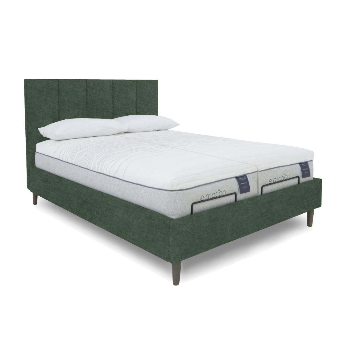 The beautifully fluted headboards of the bed frames in our Aiko range are what might first catch the eye, but it’s the exceptional comfort offered by their adjustable bases that will leave a lasting impression. Offered in a choice of sizes, these electric-powered, multi-position adjustable bed frames make more rejuvenating sleep effortless. They’re also ideal for anyone who likes to sit up in bed to watch TV. The range also includes bed frames with dual adjustable bases and optional massage function. Designed and handcrafted exclusively for Furniture Village, the Aiko range is part of our E-Motion adjustable bed collection. This upholstered adjustable bed frame with glam headboard has dual control, so you and your partner can individually fine-tune your comfort. Why you'll love it Find perfect comfort for better sleep with this dual-adjustable bed frame. Its glam headboard is luxuriously cushioned and has contemporary fluting. Dual base is electric powered for smooth and efficient movement. With 2 separate bed bases, you and your partner have individual control. A simple wireless handset makes this bed so easy to adjust. Use the handy memory function to quickly return to your favourite comfort position. There’s even a weightless-feel pre-set position for TV watching. This bed frame promotes restorative sleep by minimising discomfort that might wake you up. Adjustable beds can also reduce back ache, improve blood circulation and reduce snoring. It’s ideal if you need a little help getting in and out of bed. An ethical choice – this bed frame is made with FSC-sourced wood. In a wide selection of fashionable upholstery fabric options. Designed and handcrafted just for Furniture Village. Made in the UK. Also available with ultra-relaxing massage feature. This dual-adjustable bed frame is part of our E-Motion range. What you need to know Mattress sold separately. To ensure bed base and mattress compatibility, consider a mattress from the E-Motion range. Please check the suitability of any mattress you are considering for this adjustable base. Available in king and super king sizes. Do not sit on this adjustable bed with the foot end in a raised position. Clean regularly using a soft brush or vacuum with the curtain attachment. Deal with any spills promptly. Professional cleaning advised for oil- and grease-based stains. Some fabrics can show wear on areas of more use or in direct sunlight. Shop our E-Motion range for a huge choice of bed frames, divan bases, massage beds, mattresses and more.