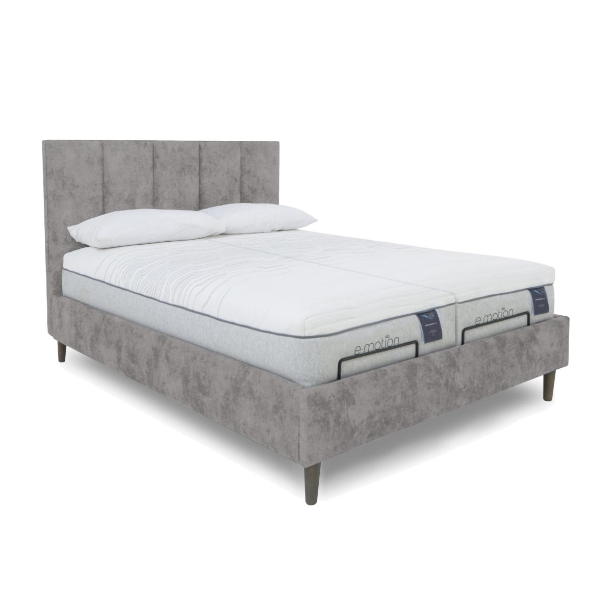 The beautifully fluted headboards of the bed frames in our Aiko range are what might first catch the eye, but it’s the exceptional comfort offered by their adjustable bases that will leave a lasting impression. Offered in a choice of sizes, these electric-powered, multi-position adjustable bed frames make more rejuvenating sleep effortless. They’re also ideal for anyone who likes to sit up in bed to watch TV. The range also includes bed frames with dual adjustable bases and optional massage function. Designed and handcrafted exclusively for Furniture Village, the Aiko range is part of our E-Motion adjustable bed collection. Meet the ultimate upholstered adjustable bed frame. It has electric-powered adjustability, massage feature, dual base for individual control and a gorgeous contemporary headboard. Why you'll love it Find perfect comfort for better sleep with this dual-adjustable bed frame with massage function. Its glam headboard is luxuriously cushioned and has contemporary fluting. Multi-setting massage function provides soothing relief for aching joints. Dual base is electric powered for smooth and efficient movement. With 2 separate bed bases, you and your partner have individual control. A simple wireless handset makes this bed so easy to adjust. Use the handy memory function to quickly return to your favourite comfort position. There’s even a weightless-feel pre-set position for TV watching. This bed frame promotes restorative sleep by minimising discomfort that might wake you up. Adjustable beds can also reduce back ache, improve blood circulation and reduce snoring. It’s ideal if you need a little help getting in and out of bed. An ethical choice – this bed frame is made with FSC-sourced wood. In a wide selection of fashionable upholstery fabric options. Designed and handcrafted just for Furniture Village. Made in the UK. This dual-adjustable massage bed frame is part of our E-Motion range. What you need to know Mattress sold separately. To ensure bed base and mattress compatibility, consider a mattress from the E-Motion range. Please check the suitability of any mattress you are considering for this adjustable base. In king and super king sizes with dual control. Also available in single size. Do not sit on this adjustable bed with the foot end in a raised position. Clean regularly using a soft brush or vacuum with the curtain attachment. Deal with any spills promptly. Professional cleaning advised for oil- and grease-based stains. Some fabrics can show wear on areas of more use or in direct sunlight. Shop our E-Motion range for a huge choice of bed frames, divan bases, massage beds, mattresses and more.