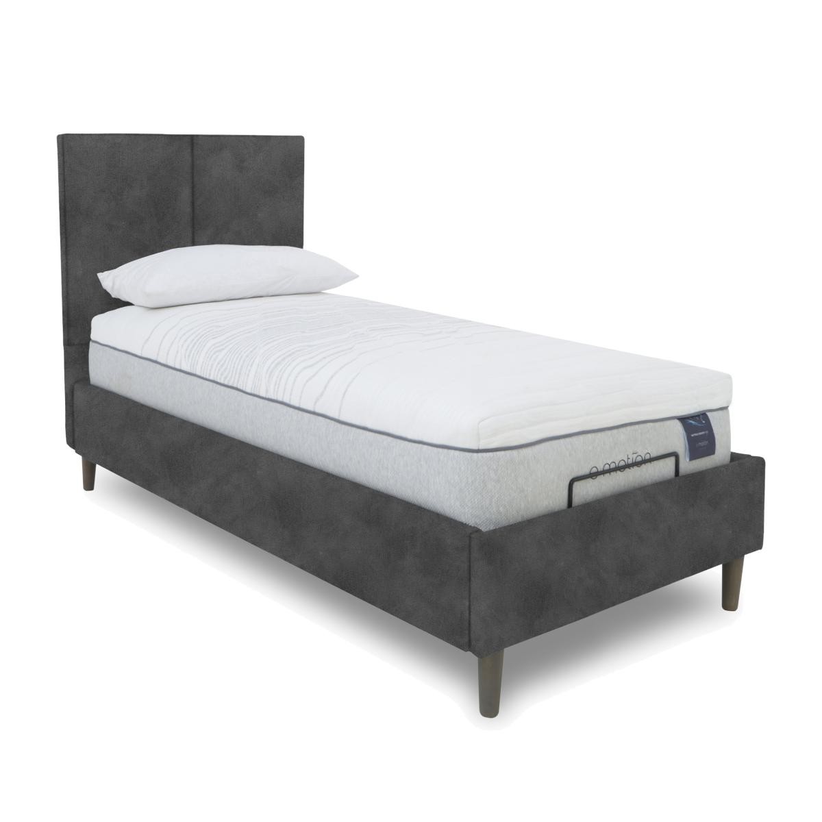 The beautifully fluted headboards of the bed frames in our Aiko range are what might first catch the eye, but it’s the exceptional comfort offered by their adjustable bases that will leave a lasting impression. Offered in a choice of sizes, these electric-powered, multi-position adjustable bed frames make more rejuvenating sleep effortless. They’re also ideal for anyone who likes to sit up in bed to watch TV. The range also includes bed frames with dual adjustable bases and optional massage function. Designed and handcrafted exclusively for Furniture Village, the Aiko range is part of our E-Motion adjustable bed collection. Meet the ultimate upholstered adjustable bed frame. It has electric-powered adjustability, massage feature, dual base for individual control and a gorgeous contemporary headboard. Why you'll love it Find perfect comfort for better sleep with this dual-adjustable bed frame with massage function. Its glam headboard is luxuriously cushioned and has contemporary fluting. Multi-setting massage function provides soothing relief for aching joints. Dual base is electric powered for smooth and efficient movement. With 2 separate bed bases, you and your partner have individual control. A simple wireless handset makes this bed so easy to adjust. Use the handy memory function to quickly return to your favourite comfort position. There’s even a weightless-feel pre-set position for TV watching. This bed frame promotes restorative sleep by minimising discomfort that might wake you up. Adjustable beds can also reduce back ache, improve blood circulation and reduce snoring. It’s ideal if you need a little help getting in and out of bed. An ethical choice – this bed frame is made with FSC-sourced wood. In a wide selection of fashionable upholstery fabric options. Designed and handcrafted just for Furniture Village. Made in the UK. This dual-adjustable massage bed frame is part of our E-Motion range. What you need to know Mattress sold separately. To ensure bed base and mattress compatibility, consider a mattress from the E-Motion range. Please check the suitability of any mattress you are considering for this adjustable base. In king and super king sizes with dual control. Also available in single size. Do not sit on this adjustable bed with the foot end in a raised position. Clean regularly using a soft brush or vacuum with the curtain attachment. Deal with any spills promptly. Professional cleaning advised for oil- and grease-based stains. Some fabrics can show wear on areas of more use or in direct sunlight. Shop our E-Motion range for a huge choice of bed frames, divan bases, massage beds, mattresses and more.