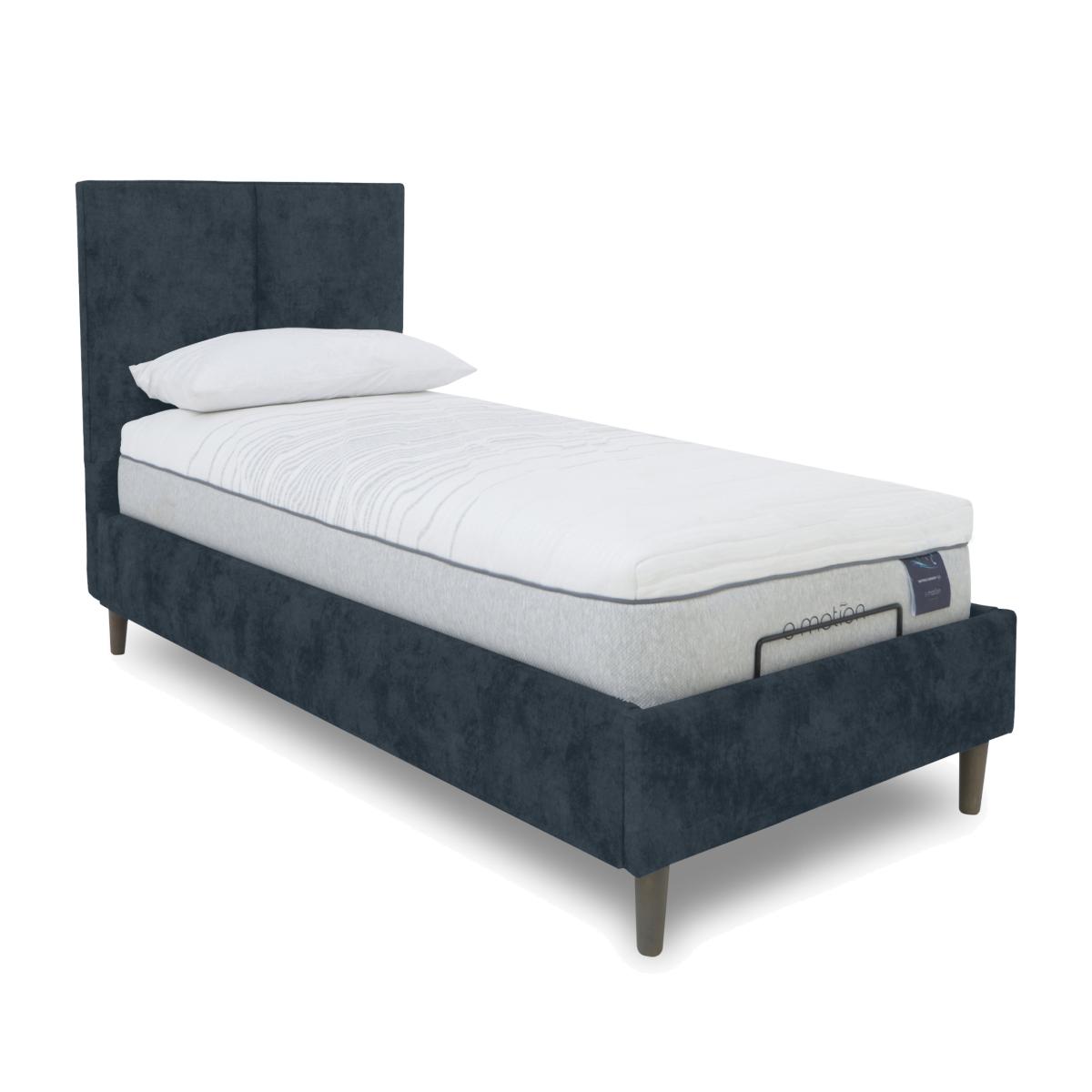 The beautifully fluted headboards of the bed frames in our Aiko range are what might first catch the eye, but it’s the exceptional comfort offered by their adjustable bases that will leave a lasting impression. Offered in a choice of sizes, these electric-powered, multi-position adjustable bed frames make more rejuvenating sleep effortless. They’re also ideal for anyone who likes to sit up in bed to watch TV. The range also includes bed frames with dual adjustable bases and optional massage function. Designed and handcrafted exclusively for Furniture Village, the Aiko range is part of our E-Motion adjustable bed collection. Meet the ultimate upholstered adjustable bed frame. It has electric-powered adjustability, massage feature, dual base for individual control and a gorgeous contemporary headboard. Why you'll love it Find perfect comfort for better sleep with this dual-adjustable bed frame with massage function. Its glam headboard is luxuriously cushioned and has contemporary fluting. Multi-setting massage function provides soothing relief for aching joints. Dual base is electric powered for smooth and efficient movement. With 2 separate bed bases, you and your partner have individual control. A simple wireless handset makes this bed so easy to adjust. Use the handy memory function to quickly return to your favourite comfort position. There’s even a weightless-feel pre-set position for TV watching. This bed frame promotes restorative sleep by minimising discomfort that might wake you up. Adjustable beds can also reduce back ache, improve blood circulation and reduce snoring. It’s ideal if you need a little help getting in and out of bed. An ethical choice – this bed frame is made with FSC-sourced wood. In a wide selection of fashionable upholstery fabric options. Designed and handcrafted just for Furniture Village. Made in the UK. This dual-adjustable massage bed frame is part of our E-Motion range. What you need to know Mattress sold separately. To ensure bed base and mattress compatibility, consider a mattress from the E-Motion range. Please check the suitability of any mattress you are considering for this adjustable base. In king and super king sizes with dual control. Also available in single size. Do not sit on this adjustable bed with the foot end in a raised position. Clean regularly using a soft brush or vacuum with the curtain attachment. Deal with any spills promptly. Professional cleaning advised for oil- and grease-based stains. Some fabrics can show wear on areas of more use or in direct sunlight. Shop our E-Motion range for a huge choice of bed frames, divan bases, massage beds, mattresses and more.