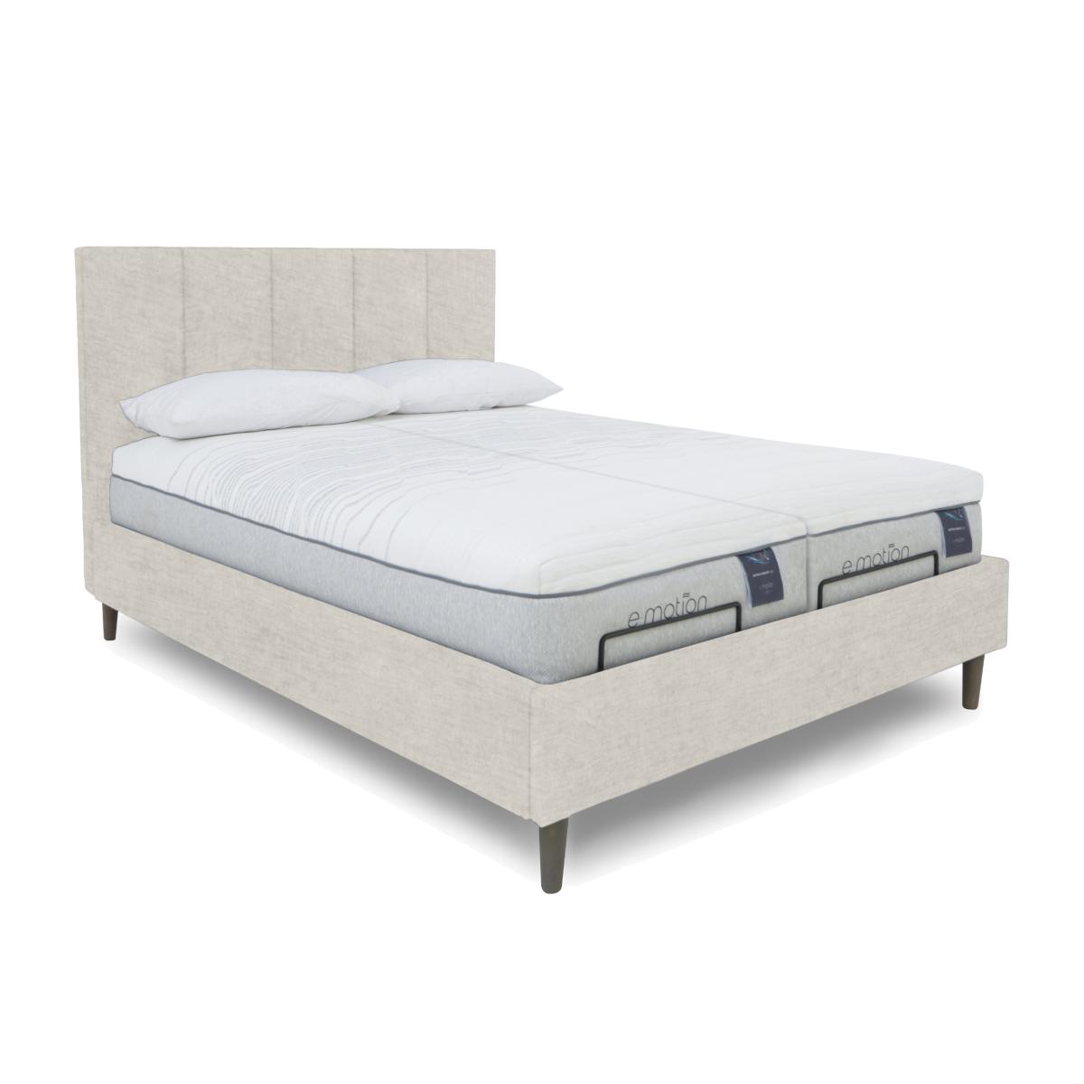 The beautifully fluted headboards of the bed frames in our Aiko range are what might first catch the eye, but it’s the exceptional comfort offered by their adjustable bases that will leave a lasting impression. Offered in a choice of sizes, these electric-powered, multi-position adjustable bed frames make more rejuvenating sleep effortless. They’re also ideal for anyone who likes to sit up in bed to watch TV. The range also includes bed frames with dual adjustable bases and optional massage function. Designed and handcrafted exclusively for Furniture Village, the Aiko range is part of our E-Motion adjustable bed collection. Meet the ultimate upholstered adjustable bed frame. It has electric-powered adjustability, massage feature, dual base for individual control and a gorgeous contemporary headboard. Why you'll love it Find perfect comfort for better sleep with this dual-adjustable bed frame with massage function. Its glam headboard is luxuriously cushioned and has contemporary fluting. Multi-setting massage function provides soothing relief for aching joints. Dual base is electric powered for smooth and efficient movement. With 2 separate bed bases, you and your partner have individual control. A simple wireless handset makes this bed so easy to adjust. Use the handy memory function to quickly return to your favourite comfort position. There’s even a weightless-feel pre-set position for TV watching. This bed frame promotes restorative sleep by minimising discomfort that might wake you up. Adjustable beds can also reduce back ache, improve blood circulation and reduce snoring. It’s ideal if you need a little help getting in and out of bed. An ethical choice – this bed frame is made with FSC-sourced wood. In a wide selection of fashionable upholstery fabric options. Designed and handcrafted just for Furniture Village. Made in the UK. This dual-adjustable massage bed frame is part of our E-Motion range. What you need to know Mattress sold separately. To ensure bed base and mattress compatibility, consider a mattress from the E-Motion range. Please check the suitability of any mattress you are considering for this adjustable base. In king and super king sizes with dual control. Also available in single size. Do not sit on this adjustable bed with the foot end in a raised position. Clean regularly using a soft brush or vacuum with the curtain attachment. Deal with any spills promptly. Professional cleaning advised for oil- and grease-based stains. Some fabrics can show wear on areas of more use or in direct sunlight. Shop our E-Motion range for a huge choice of bed frames, divan bases, massage beds, mattresses and more.