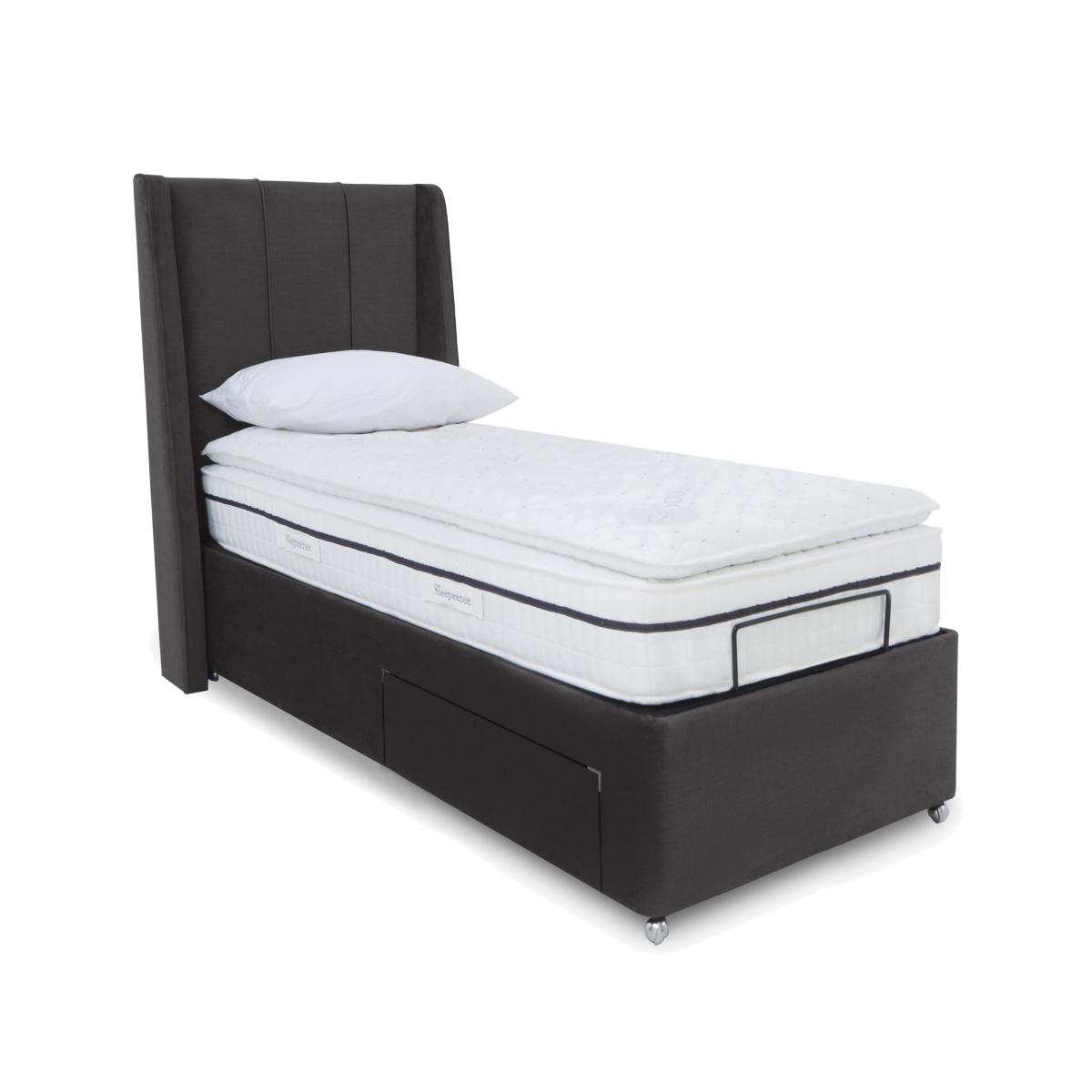 E-Motion Akira Adjustable Divan Base With 2 Drawers with Headboard - Single - Seven Anthracite