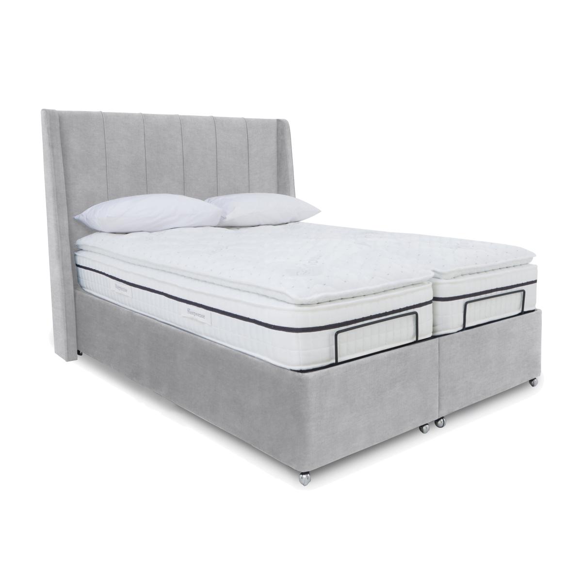 E-Motion Akira Dual Adjustable Ottoman Divan Base with Massage Function and Headboard - King Size - Aston Silver