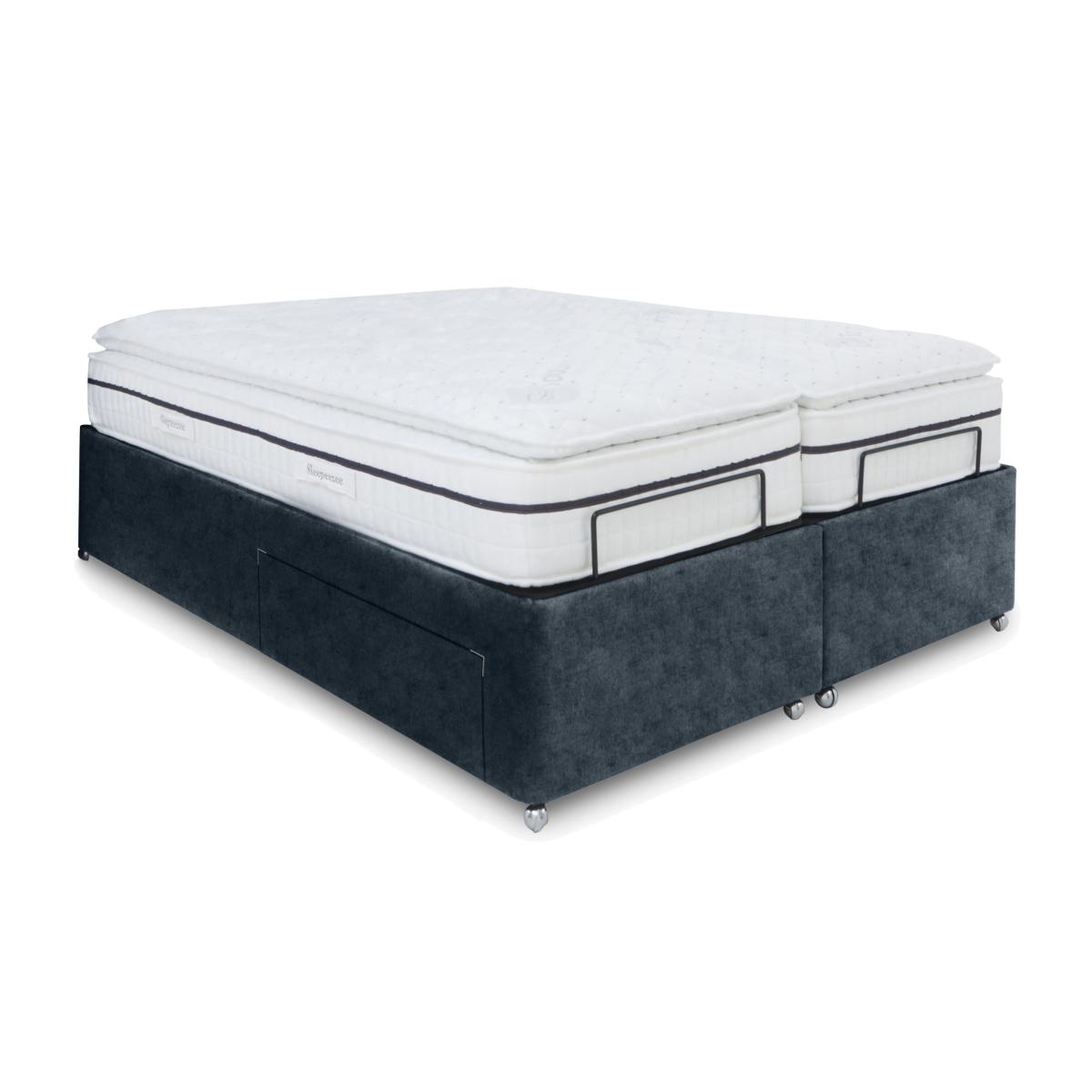 The next generation of adjustable beds is here. The adjustable bed frames and divan bases in our E-Motion collection do far more than you might expect. Opt for one with built-in massage functionality for even more relaxation. Dual-adjustable bases mean that both sides of the bed can be operated independently to suit each partner’s comfort needs. And thanks to smooth electric-powered mechanisms and wireless remote controls, finding the perfect position is smooth and simple. The E-Motion collection includes a wide range of stylish upholstered bed frames, divan bases complete with headboards and mattresses. Made in the UK and only at Furniture Village. This dual-adjustable divan base is perfect for couples who want an adjustable bed but can’t agree on how it’s adjusted. Each side of the bed can be operated independently. Why you'll love it Find perfect comfort for better sleep with this dual-adjustable divan base. Dual base is electric powered for smooth and efficient movement. With 2 separate bed bases, you and your partner have individual control. A simple wireless handset makes this bed so easy to adjust. Use the handy memory function to quickly return to your favourite comfort position. There’s even a weightless-feel pre-set position for TV watching. This divan base promotes restorative sleep by minimising discomfort that might wake you up. Adjustable beds can also reduce back ache, improve blood circulation and reduce snoring. It’s ideal if you need a little help getting in and out of bed. An ethical choice – this divan base is made with FSC-sourced wood. With optional storage drawers in a range of configurations. In a wide selection of fashionable upholstery fabric options. Designed and handcrafted just for Furniture Village. Made in the UK. Also available with ultra-relaxing massage feature. And with a choice of stylish, luxuriously cushioned headboards. This dual-adjustable divan base is part of our E-Motion range. What you need to know Mattress sold separately. To ensure bed base and mattress compatibility, consider a mattress from the E-Motion range. Please check the suitability of any mattress you are considering for this adjustable base. Available in king and super king sizes. Do not sit on this adjustable bed with the foot end in a raised position. Clean regularly using a soft brush or vacuum with the curtain attachment. Deal with any spills promptly. Professional cleaning advised for oil- and grease-based stains. Some fabrics can show wear on areas of more use or in direct sunlight. Shop our E-Motion range for a huge choice of bed frames, divan bases, massage beds, mattresses and more.