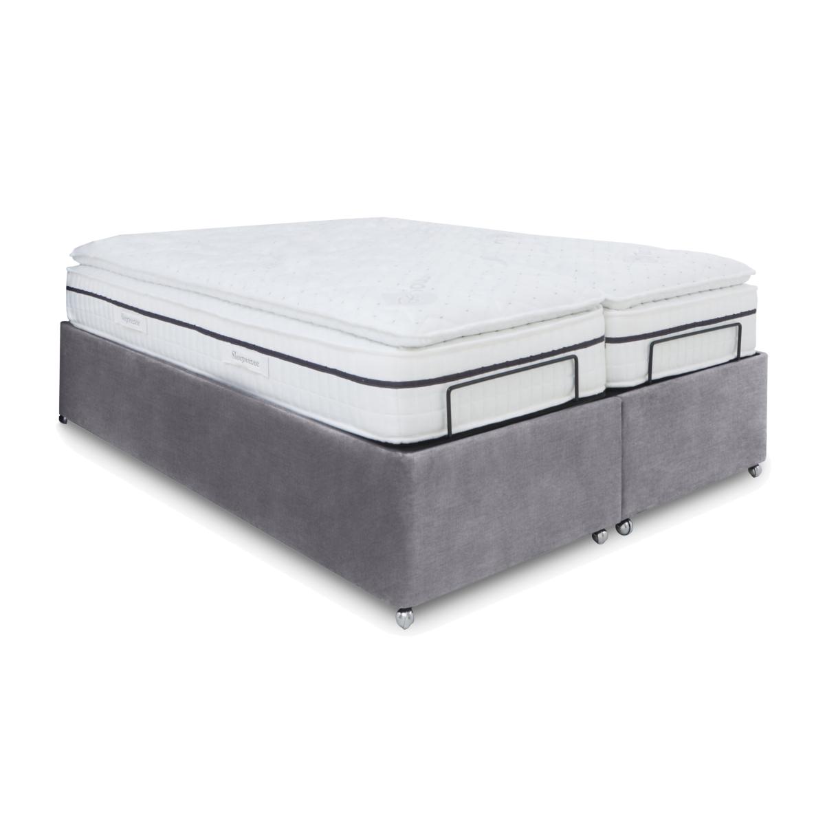 The next generation of adjustable beds is here. The adjustable bed frames and divan bases in our E-Motion collection do far more than you might expect. Opt for one with built-in massage functionality for even more relaxation. Dual-adjustable bases mean that both sides of the bed can be operated independently to suit each partner’s comfort needs. And thanks to smooth electric-powered mechanisms and wireless remote controls, finding the perfect position is smooth and simple. The E-Motion collection includes a wide range of stylish upholstered bed frames, divan bases complete with headboards and mattresses. Made in the UK and only at Furniture Village. With two side-by-side bases and two remote controls, this dual-adjustable divan base is guaranteed to eliminate disagreements. And it has spacious underbed storage too. Why you'll love it Find perfect comfort for better sleep with this dual-adjustable ottoman divan base. And you’ll love the roomy hidden storage compartment. Dual base is electric powered for smooth and efficient movement. With 2 separate bed bases, you and your partner have individual control. A simple wireless handset makes this bed so easy to adjust. Use the handy memory function to quickly return to your favourite comfort position. There’s even a weightless-feel pre-set position for TV watching. This divan base promotes restorative sleep by minimising discomfort that might wake you up. Adjustable beds can also reduce back ache, improve blood circulation and reduce snoring. It’s ideal if you need a little help getting in and out of bed. An ethical choice – this ottoman divan base is made with FSC-sourced wood. In a wide selection of fashionable upholstery fabric options. Designed and handcrafted just for Furniture Village. Made in the UK. Also available with ultra-relaxing massage feature. And with a choice of stylish, luxuriously cushioned headboards. This dual-adjustable ottoman divan base is part of our E-Motion range. What you need to know Mattress sold separately. To ensure bed base and mattress compatibility, consider a mattress from the E-Motion range. Please check the suitability of any mattress you are considering for this adjustable base. Available in king and super king sizes. This ottoman divan base opens at the end. Maximum mattress weight is 80 kg. Please keep hands clear of the mechanism when opening and closing the ottoman. Do not sit on this adjustable bed with the foot end in a raised position. Clean regularly using a soft brush or vacuum with the curtain attachment. Deal with any spills promptly. Professional cleaning advised for oil- and grease-based stains. Some fabrics can show wear on areas of more use or in direct sunlight. Shop our E-Motion range for a huge choice of bed frames, divan bases, massage beds, mattresses and more.