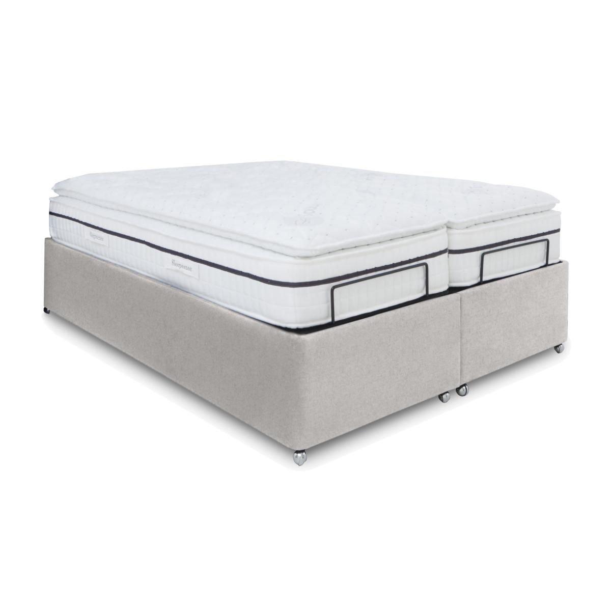 The next generation of adjustable beds is here. The adjustable bed frames and divan bases in our E-Motion collection do far more than you might expect. Opt for one with built-in massage functionality for even more relaxation. Dual-adjustable bases mean that both sides of the bed can be operated independently to suit each partner’s comfort needs. And thanks to smooth electric-powered mechanisms and wireless remote controls, finding the perfect position is smooth and simple. The E-Motion collection includes a wide range of stylish upholstered bed frames, divan bases complete with headboards and mattresses. Made in the UK and only at Furniture Village. With two side-by-side bases and two remote controls, this dual-adjustable divan base is guaranteed to eliminate disagreements. And it has spacious underbed storage too. Why you'll love it Find perfect comfort for better sleep with this dual-adjustable ottoman divan base. And you’ll love the roomy hidden storage compartment. Dual base is electric powered for smooth and efficient movement. With 2 separate bed bases, you and your partner have individual control. A simple wireless handset makes this bed so easy to adjust. Use the handy memory function to quickly return to your favourite comfort position. There’s even a weightless-feel pre-set position for TV watching. This divan base promotes restorative sleep by minimising discomfort that might wake you up. Adjustable beds can also reduce back ache, improve blood circulation and reduce snoring. It’s ideal if you need a little help getting in and out of bed. An ethical choice – this ottoman divan base is made with FSC-sourced wood. In a wide selection of fashionable upholstery fabric options. Designed and handcrafted just for Furniture Village. Made in the UK. Also available with ultra-relaxing massage feature. And with a choice of stylish, luxuriously cushioned headboards. This dual-adjustable ottoman divan base is part of our E-Motion range. What you need to know Mattress sold separately. To ensure bed base and mattress compatibility, consider a mattress from the E-Motion range. Please check the suitability of any mattress you are considering for this adjustable base. Available in king and super king sizes. This ottoman divan base opens at the end. Maximum mattress weight is 80 kg. Please keep hands clear of the mechanism when opening and closing the ottoman. Do not sit on this adjustable bed with the foot end in a raised position. Clean regularly using a soft brush or vacuum with the curtain attachment. Deal with any spills promptly. Professional cleaning advised for oil- and grease-based stains. Some fabrics can show wear on areas of more use or in direct sunlight. Shop our E-Motion range for a huge choice of bed frames, divan bases, massage beds, mattresses and more.