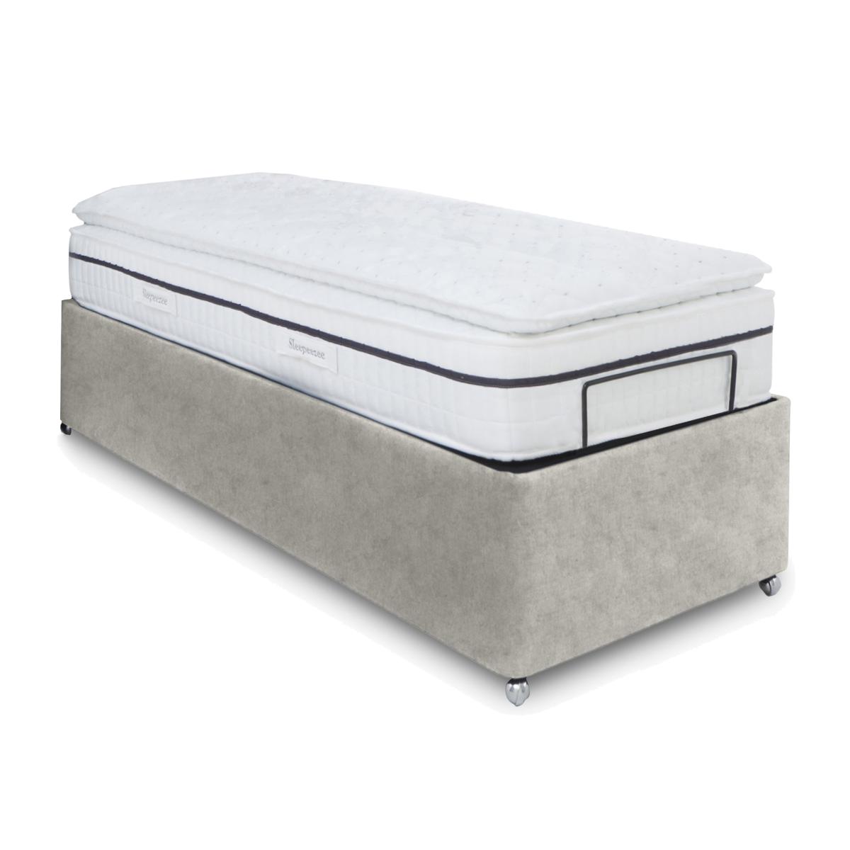 The next generation of adjustable beds is here. The adjustable bed frames and divan bases in our E-Motion collection do far more than you might expect. Opt for one with built-in massage functionality for even more relaxation. Dual-adjustable bases mean that both sides of the bed can be operated independently to suit each partner’s comfort needs. And thanks to smooth electric-powered mechanisms and wireless remote controls, finding the perfect position is smooth and simple. The E-Motion collection includes a wide range of stylish upholstered bed frames, divan bases complete with headboards and mattresses. Made in the UK and only at Furniture Village. This upholstered divan base has plenty of hidden features including two independently adjustable bed bases, massage functionality and generous ottoman storage. Why you'll love it Find perfect comfort for better sleep with this dual-adjustable massage ottoman divan base with massage function. And you’ll love the roomy hidden storage compartment. Multi-setting massage function provides soothing relief for aching joints. Dual base is electric powered for smooth and efficient movement. With 2 separate bed bases, you and your partner have individual control. A simple wireless handset makes this bed so easy to adjust. Use the handy memory function to quickly return to your favourite comfort position. There’s even a weightless-feel pre-set position for TV watching. This divan base promotes restorative sleep by minimising discomfort that might wake you up. Adjustable beds can also reduce back ache, improve blood circulation and reduce snoring. It’s ideal if you need a little help getting in and out of bed. An ethical choice – this ottoman divan base is made with FSC-sourced wood. In a wide selection of fashionable upholstery fabric options. Designed and handcrafted just for Furniture Village. Made in the UK. Also available with a choice of stylish, luxuriously cushioned headboards. This dual-adjustable massage ottoman divan base is part of our E-Motion range. What you need to know Mattress sold separately. To ensure bed base and mattress compatibility, consider a mattress from the E-Motion range. Please check the suitability of any mattress you are considering for this adjustable base. In king and super king sizes with dual control. Also available in single size. This ottoman divan base opens at the end. Maximum mattress weight is 40 kg for the single ottoman base and 80 kg for the king and super king ottoman bases. Please keep hands clear of the mechanism when opening and closing the ottoman. Do not sit on this adjustable bed with the foot end in a raised position. Clean regularly using a soft brush or vacuum with the curtain attachment. Deal with any spills promptly. Professional cleaning advised for oil- and grease-based stains. Some fabrics can show wear on areas of more use or in direct sunlight. Shop our E-Motion range for a huge choice of bed frames, divan bases, massage beds, mattresses and more.