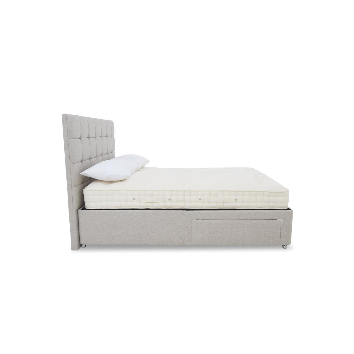 I love this Kaito adjustable divan in the Daytona Ocean fabric for its sleek, versatile look that works well in modern or contemporary interiors. Its clean lines and tufted headboard add a touch of sophistication, while the built-in drawers provide practical storage - perfect for maximising space in smaller bedrooms. Stylistically, it’s flexible enough to pair with both minimalistic designs and more layered, cosy schemes. For a polished look, consider pairing it with crisp bedding and metallic accents, or soften it with textured throws and cushions. Its adjustable feature also makes it super functional, allowing for customised comfort without compromising on style.
