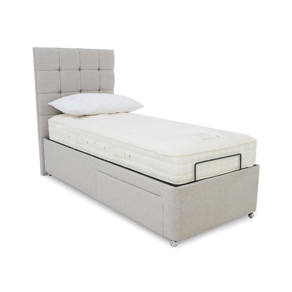 E-Motion Kaito Adjustable Divan Base With 2 Drawers with Headboard - Single - Shetland Pebble