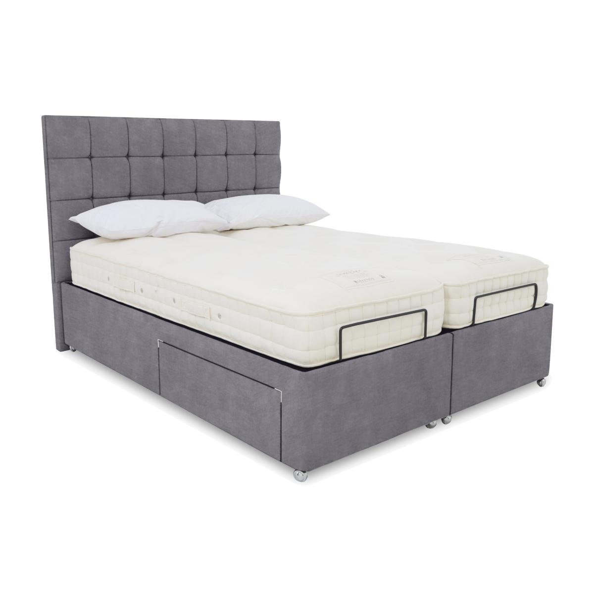 E-Motion Kaito Dual Adjustable Divan Base With 2 Drawers with Massage Function and Headboard - King Size - Aston Steel