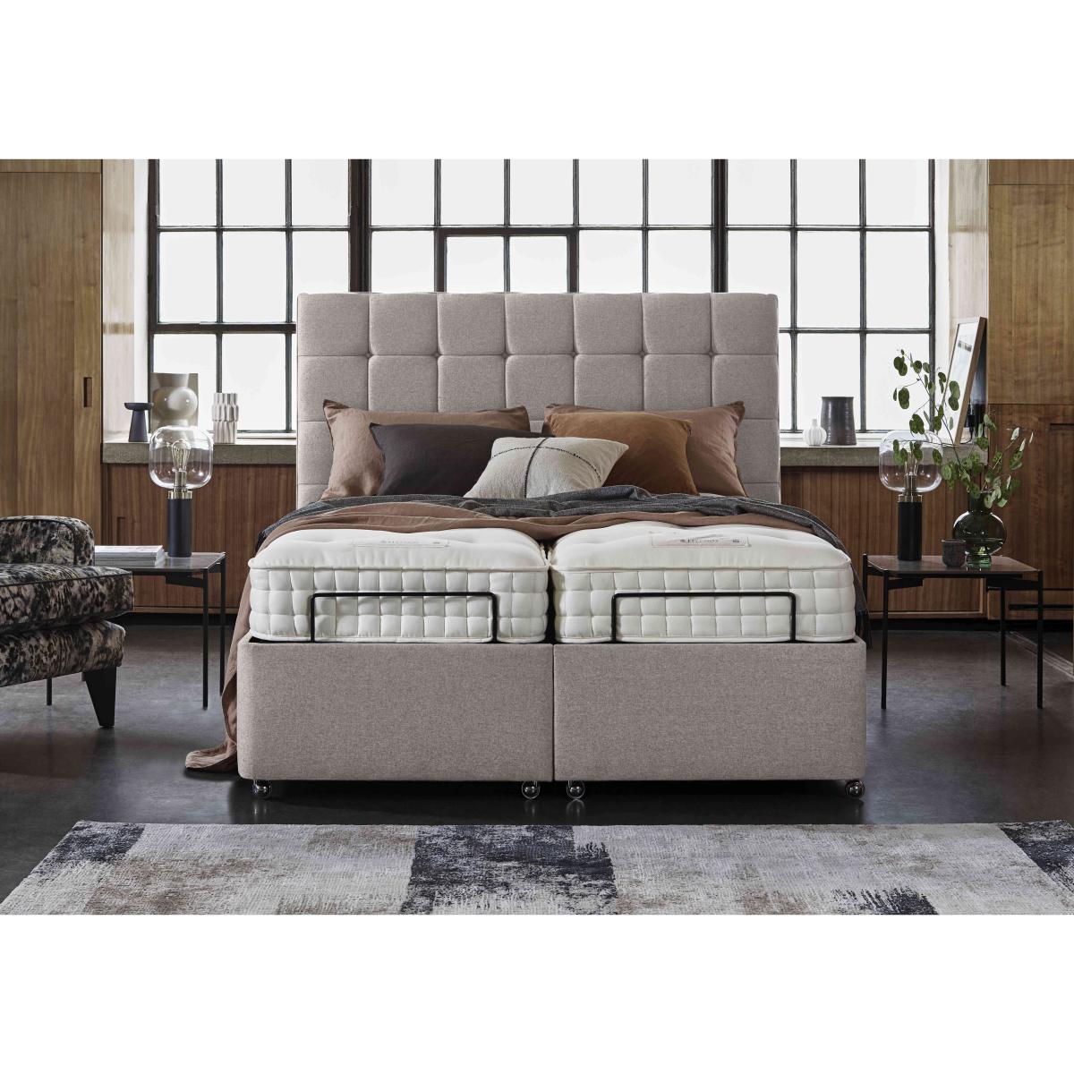 The divan bases in our Kaito range make a strong first impression. Each comes complete with a luxurious buttoned headboard that’ll give your bedroom a bold modern look. And because these bed bases are adjustable, that first impression is matched by long-lasting comfort. Electric-powered and with multi-position adjustability, Kaito divan bases make it easier to get truly comfortable whether you’re sleeping or sitting up in bed to read. Bed bases are available with a variety of storage options and massage functionality, and the range also includes dual adjustable bases. Designed and handcrafted exclusively for Furniture Village, the Kaito range is part of our E-Motion adjustable bed collection. Everyone will be happy with this stylish adjustable divan base. Each side can be operated independently and it also comes with massage feature and our beautiful buttoned Kaito headboard. Why you'll love it Find perfect comfort for better sleep with this dual-adjustable divan base with massage function. This divan base comes with our luxuriously cushioned and buttoned Kaito headboard. Multi-setting massage function provides soothing relief for aching joints. Dual base is electric powered for smooth and efficient movement. With 2 separate bed bases, you and your partner have individual control. A simple wireless handset makes this bed so easy to adjust. Use the handy memory function to quickly return to your favourite comfort position. There’s even a weightless-feel pre-set position for TV watching. This divan base promotes restorative sleep by minimising discomfort that might wake you up. Adjustable beds can also reduce back ache, improve blood circulation and reduce snoring. It’s ideal if you need a little help getting in and out of bed. An ethical choice – this divan base is made with FSC-sourced wood. With optional storage drawers in a range of configurations. In a wide selection of fashionable upholstery fabric options. Designed and handcrafted just for Furniture Village. Made in the UK. This dual-adjustable massage divan base is part of our E-Motion range. What you need to know Mattress sold separately. To ensure bed base and mattress compatibility, consider a mattress from the E-Motion range. Please check the suitability of any mattress you are considering for this adjustable base. In king and super king sizes with dual control. Also available in single size. Do not sit on this adjustable bed with the foot end in a raised position. Clean regularly using a soft brush or vacuum with the curtain attachment. Deal with any spills promptly. Professional cleaning advised for oil- and grease-based stains. Some fabrics can show wear on areas of more use or in direct sunlight. Shop our E-Motion range for a huge choice of bed frames, divan bases, massage beds, mattresses and more.