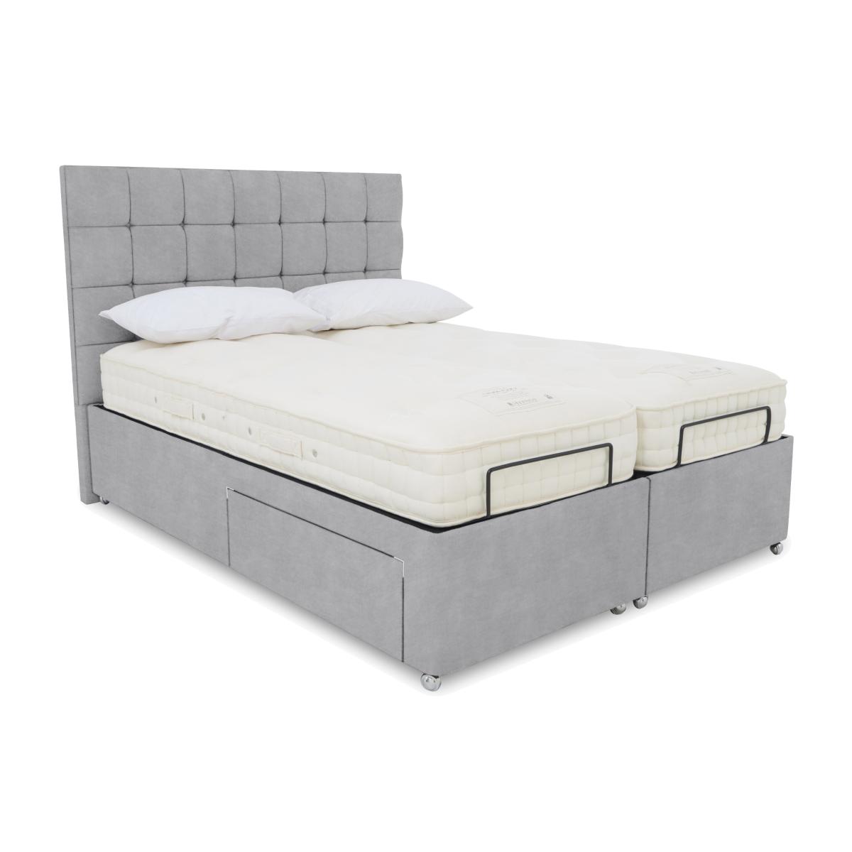 E-Motion Kaito Dual Adjustable Divan Base With 4 Drawers with Headboard - King Size - Aston Silver