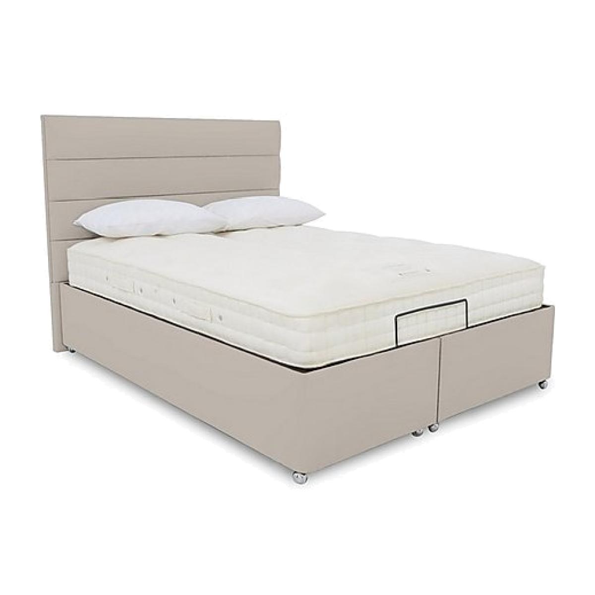 Adjustable comfort, practicality and style in one. This stunning adjustable ottoman divan base comes completes our sophisticated Natsu headboard. Only at Furniture Village. Why you'll love it Find perfect comfort for better sleep with this adjustable ottoman divan base. Comes complete with our sophisticated Natsu headboard with stylish horizontal stitching. And youll love the roomy hidden storage compartment. A simple wireless handset makes this bed so easy to adjust. Use the handy memory function to quickly return to your favourite comfort position. Theres even a weightless- feel pre- set position for TV watching. This divan base promotes restorative sleep by minimising discomfort that might wake you up. Adjustable beds can also reduce back ache, improve blood circulation and reduce snoring. Its ideal if you need a little help getting in and out of bed. An ethical choice this ottoman divan base is made with FSC- sourced wood. In a wide selection of fashionable upholstery fabric options. Designed and handcrafted just for Furniture Village. Made in the UK. Also available with 2- person adjustability and massage function. This adjustable ottoman divan base is part of our E- Motion range. What you need to know Mattress sold separately. To ensure bed base and mattress compatibility, consider a mattress from the E- Motion range. Please check the suitability of any mattress you are considering for this adjustable base. Available in single and king sizes. This ottoman divan base opens at the end. Maximum mattress weight is 40 kg for the single ottoman base and 80 kg for the king ottoman base. Please keep hands clear of the mechanism when opening and closing the ottoman. Do not sit on this adjustable bed with the foot end in a raised position. Clean regularly using a soft brush or vacuum with the curtain attachment. Deal with any spills promptly. Professional cleaning advised for oil- and grease- based stains. Some fabrics can show wear on areas of more use or in direct sunlight. Shop our E- Motion range for a huge choice of bed frames, divan bases, massage beds, mattresses and more.