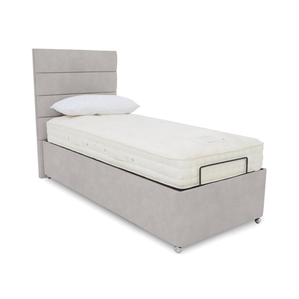 Transform the way you sleep and elevate your bedroom style with an adjustable divan bed base from our Natsu range. Complete with luxuriously cushioned headboards with modern horizontal fluting, the look is simply sumptuous and with multi-position electric-powered adjustability the level of comfort is just as impressive. They’re also perfect for anyone who needs a little extra help getting in and out of bed. As well as dual adjustable bases and optional massage functionality, these divan bases also offer optional storage drawers and large ottoman compartments. Designed and handcrafted exclusively for Furniture Village, the Natsu range is part of our E-Motion adjustable bed collection. Adjustable comfort, practicality and style – in one. This stunning adjustable ottoman divan base comes completes our sophisticated Natsu headboard. Only at Furniture Village. Why you'll love it Find perfect comfort for better sleep with this adjustable ottoman divan base. Comes complete with our sophisticated Natsu headboard with stylish horizontal stitching. And you’ll love the roomy hidden storage compartment. A simple wireless handset makes this bed so easy to adjust. Use the handy memory function to quickly return to your favourite comfort position. There’s even a weightless-feel pre-set position for TV watching. This divan base promotes restorative sleep by minimising discomfort that might wake you up. Adjustable beds can also reduce back ache, improve blood circulation and reduce snoring. It’s ideal if you need a little help getting in and out of bed. An ethical choice – this ottoman divan base is made with FSC-sourced wood. In a wide selection of fashionable upholstery fabric options. Designed and handcrafted just for Furniture Village. Made in the UK. Also available with 2-person adjustability and massage function. This adjustable ottoman divan base is part of our E-Motion range. What you need to know Mattress sold separately. To ensure bed base and mattress compatibility, consider a mattress from the E-Motion range. Please check the suitability of any mattress you are considering for this adjustable base. Available in single and king sizes. This ottoman divan base opens at the end. Maximum mattress weight is 40 kg for the single ottoman base and 80 kg for the king ottoman base. Please keep hands clear of the mechanism when opening and closing the ottoman. Do not sit on this adjustable bed with the foot end in a raised position. Clean regularly using a soft brush or vacuum with the curtain attachment. Deal with any spills promptly. Professional cleaning advised for oil- and grease-based stains. Some fabrics can show wear on areas of more use or in direct sunlight. Shop our E-Motion range for a huge choice of bed frames, divan bases, massage beds, mattresses and more.