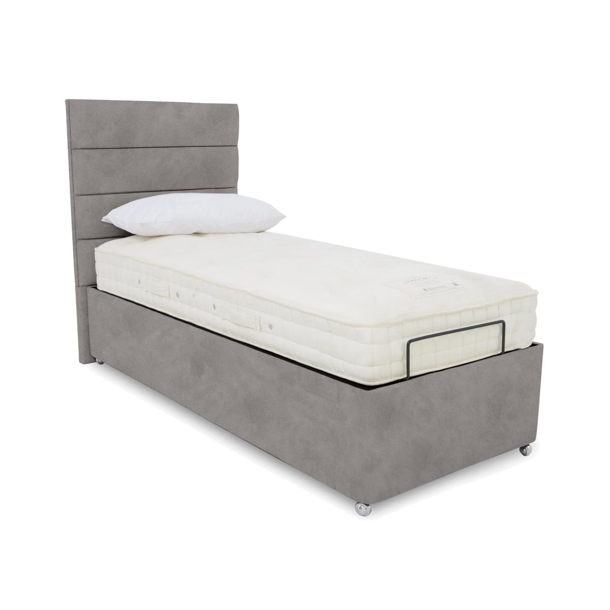 Transform the way you sleep and elevate your bedroom style with an adjustable divan bed base from our Natsu range. Complete with luxuriously cushioned headboards with modern horizontal fluting, the look is simply sumptuous and with multi-position electric-powered adjustability the level of comfort is just as impressive. They’re also perfect for anyone who needs a little extra help getting in and out of bed. As well as dual adjustable bases and optional massage functionality, these divan bases also offer optional storage drawers and large ottoman compartments. Designed and handcrafted exclusively for Furniture Village, the Natsu range is part of our E-Motion adjustable bed collection. Adjustable comfort, practicality and style – in one. This stunning adjustable ottoman divan base comes completes our sophisticated Natsu headboard. Only at Furniture Village. Why you'll love it Find perfect comfort for better sleep with this adjustable ottoman divan base. Comes complete with our sophisticated Natsu headboard with stylish horizontal stitching. And you’ll love the roomy hidden storage compartment. A simple wireless handset makes this bed so easy to adjust. Use the handy memory function to quickly return to your favourite comfort position. There’s even a weightless-feel pre-set position for TV watching. This divan base promotes restorative sleep by minimising discomfort that might wake you up. Adjustable beds can also reduce back ache, improve blood circulation and reduce snoring. It’s ideal if you need a little help getting in and out of bed. An ethical choice – this ottoman divan base is made with FSC-sourced wood. In a wide selection of fashionable upholstery fabric options. Designed and handcrafted just for Furniture Village. Made in the UK. Also available with 2-person adjustability and massage function. This adjustable ottoman divan base is part of our E-Motion range. What you need to know Mattress sold separately. To ensure bed base and mattress compatibility, consider a mattress from the E-Motion range. Please check the suitability of any mattress you are considering for this adjustable base. Available in single and king sizes. This ottoman divan base opens at the end. Maximum mattress weight is 40 kg for the single ottoman base and 80 kg for the king ottoman base. Please keep hands clear of the mechanism when opening and closing the ottoman. Do not sit on this adjustable bed with the foot end in a raised position. Clean regularly using a soft brush or vacuum with the curtain attachment. Deal with any spills promptly. Professional cleaning advised for oil- and grease-based stains. Some fabrics can show wear on areas of more use or in direct sunlight. Shop our E-Motion range for a huge choice of bed frames, divan bases, massage beds, mattresses and more.
